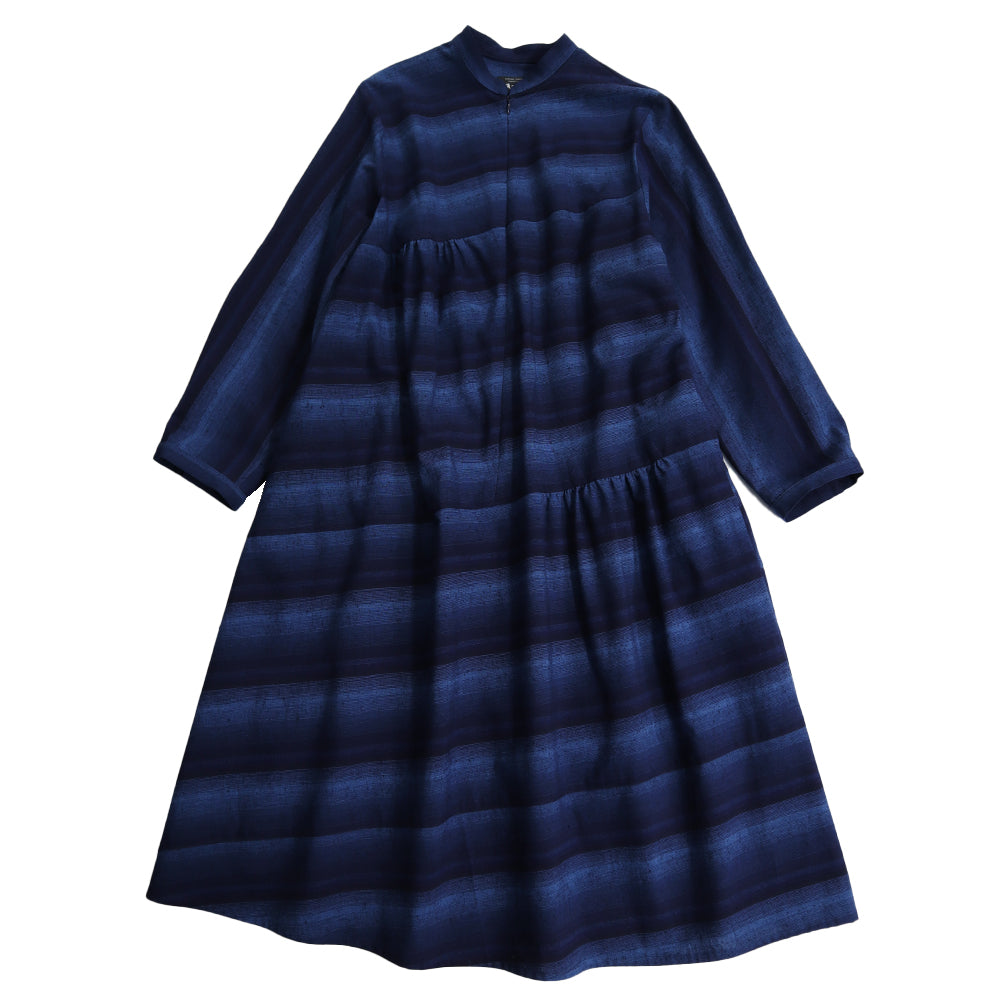儀右ヱ門 ギエモン ぎえもん 久留米絣 スタンドカラー ワンピース ソ239 日本製