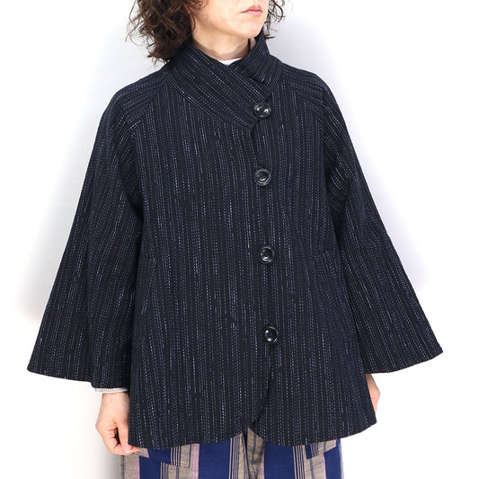 Giemon Giemon Giemon Kurume Kasuri Lined Jacket Poncho Ke152 Made in Japan