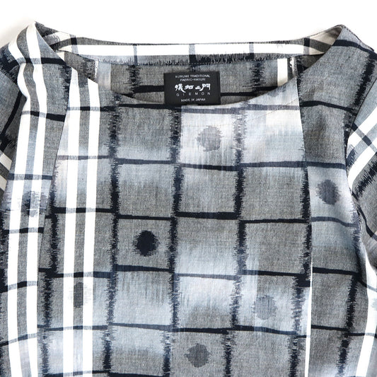 Giemon Giemon Kurume Kasuri Pullover Tunic Length Blouse Ta537 Made in Japan [2025ss]