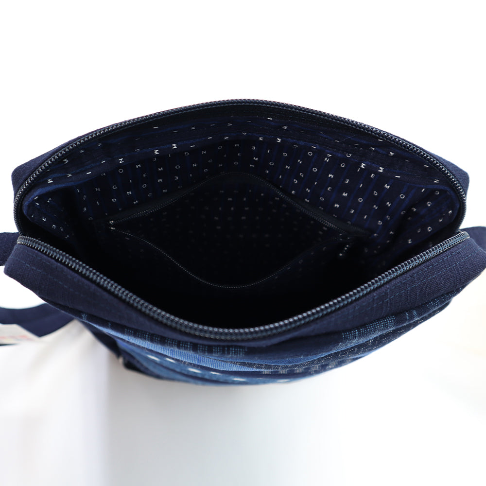 Kurume kasuri patterned fabric is used on the shoulders and hem.