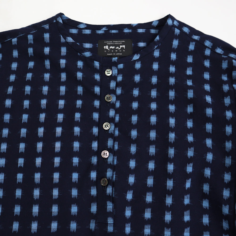 Kurume kasuri patterned fabric is used on the shoulders and hem.