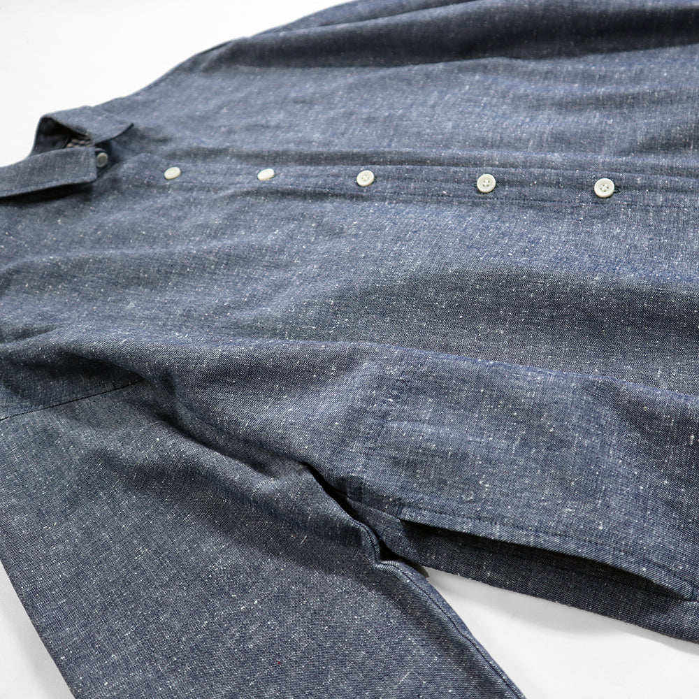 Kurume kasuri patterned fabric is used on the shoulders and hem.