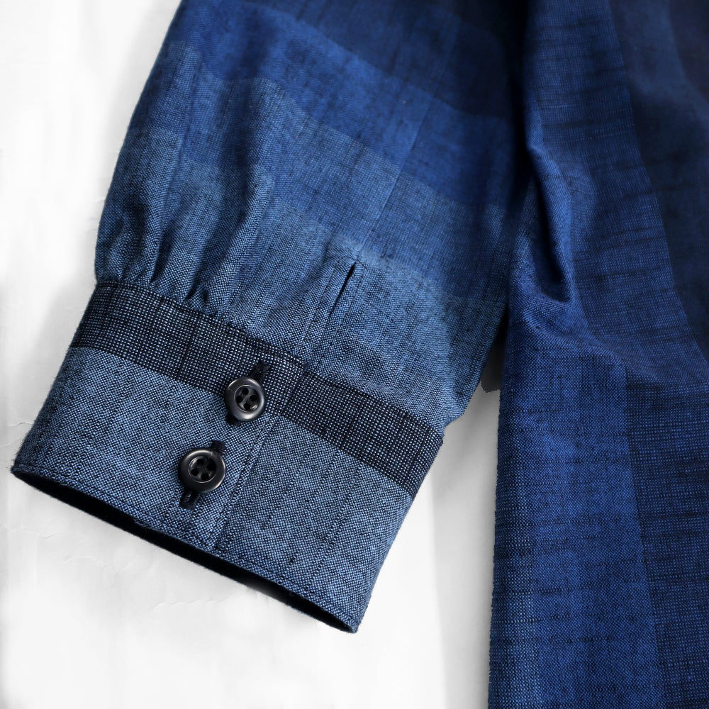 Kurume kasuri patterned fabric is used on the shoulders and hem.