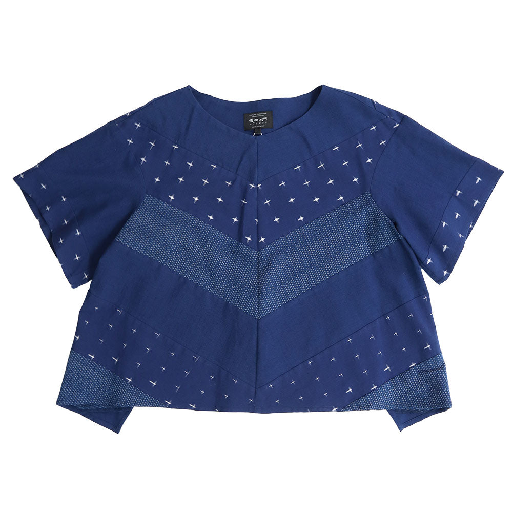 Giemon Giemon Giemon Kurume Kasuri Color Switching Pullover Blouse Ta524 [2024ss]