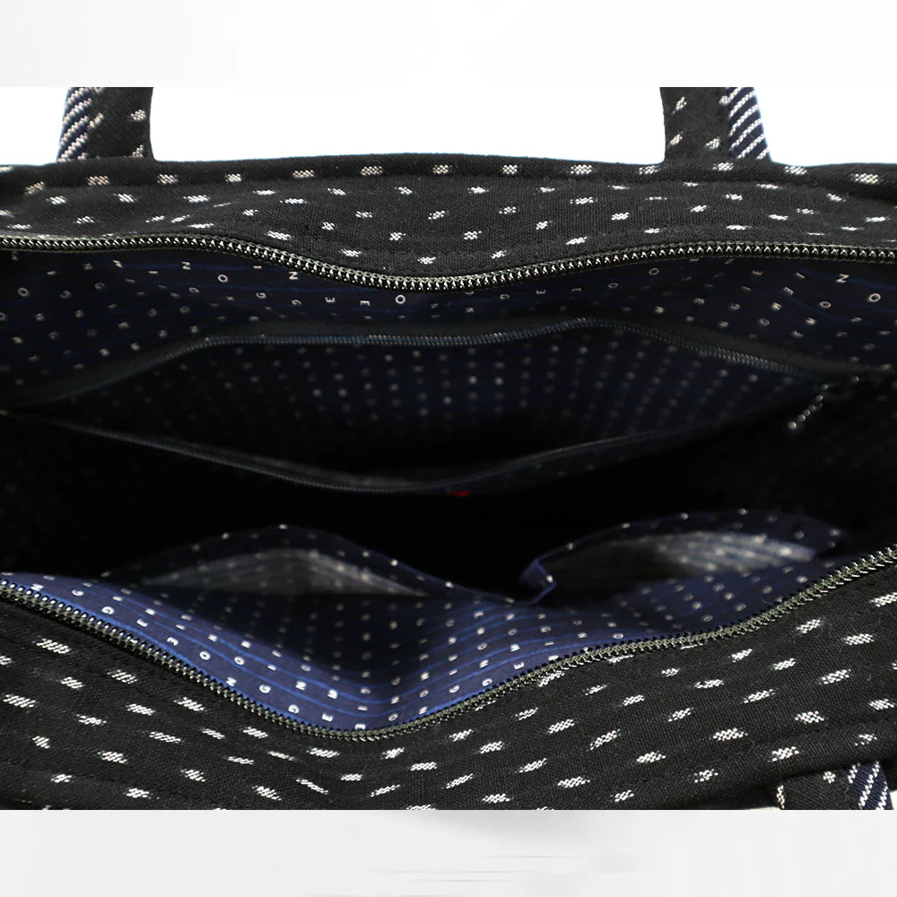 とっても使いやすい上部ファスナー使用のトートバッグ。