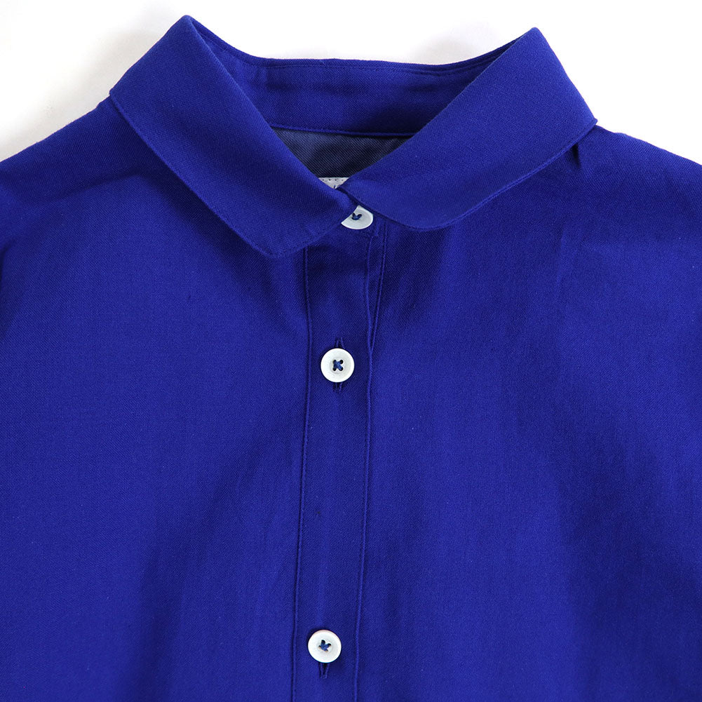 A Kurume kasuri shirt dress with open front and 3/4 sleeves.