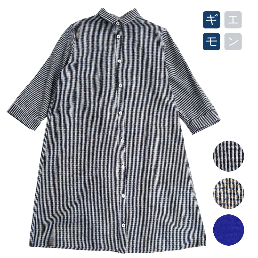 Giemon Giemon Kurume Kasuri 3/4 Sleeve Shirt Dress Y2171 Made in Japan [2025ss]