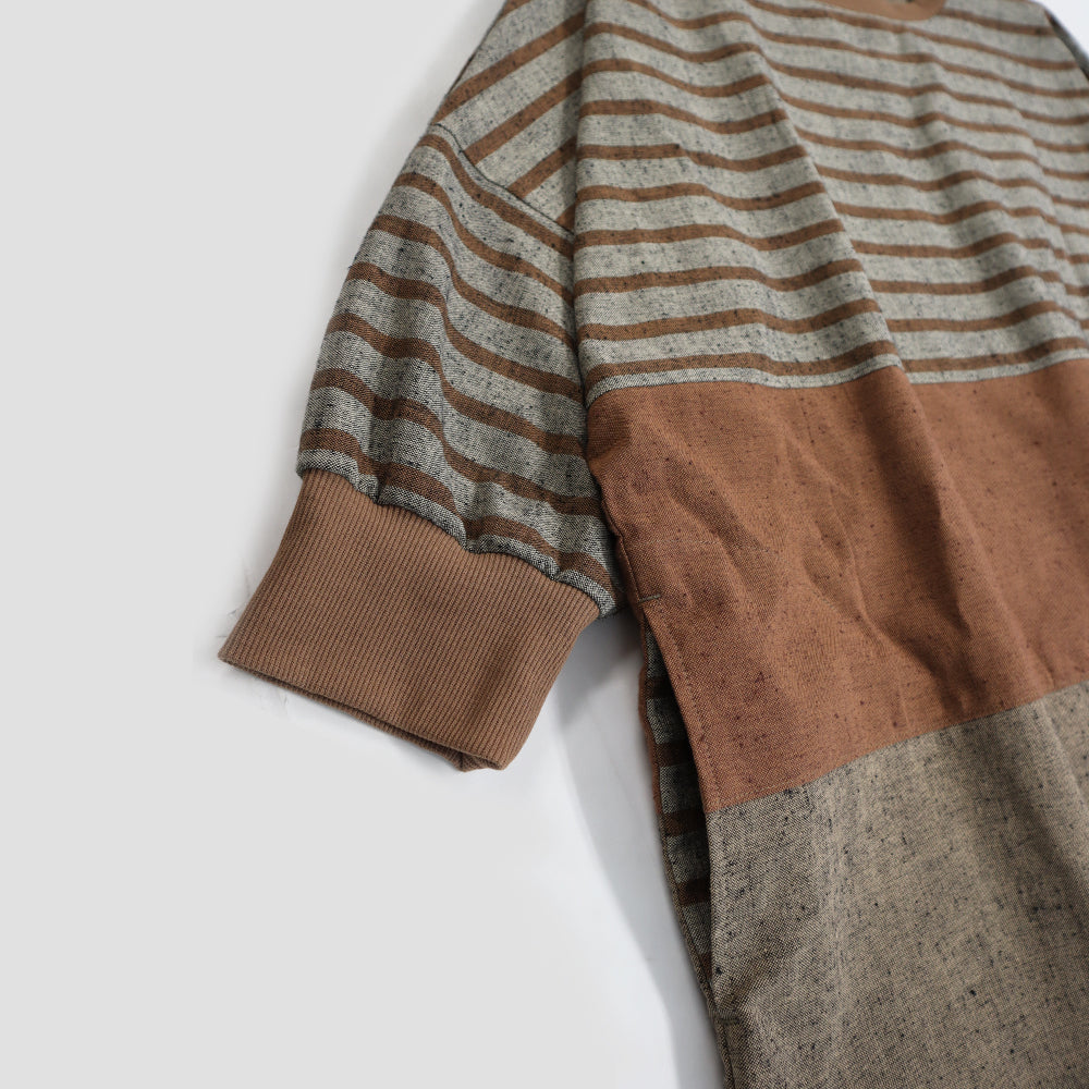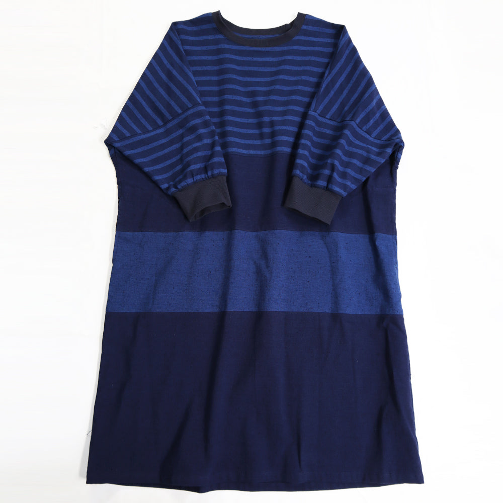 七分リブ袖プルオーバーワンピース。ゆったりとしたシルエットでラフに着られるワンピースです。