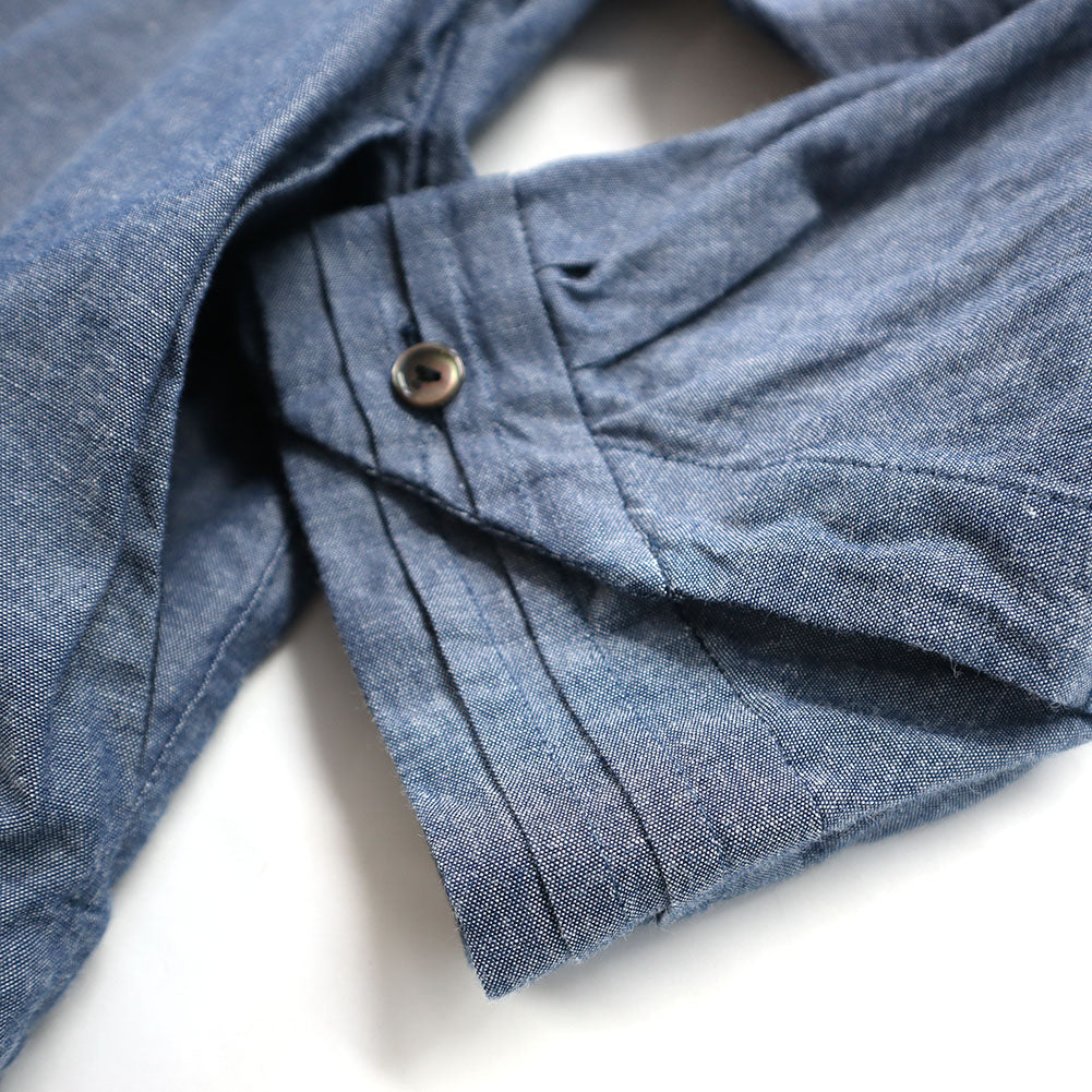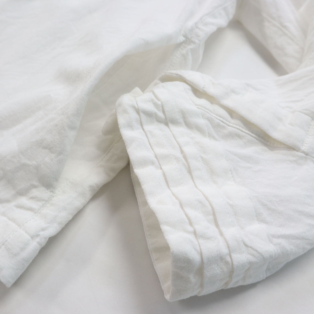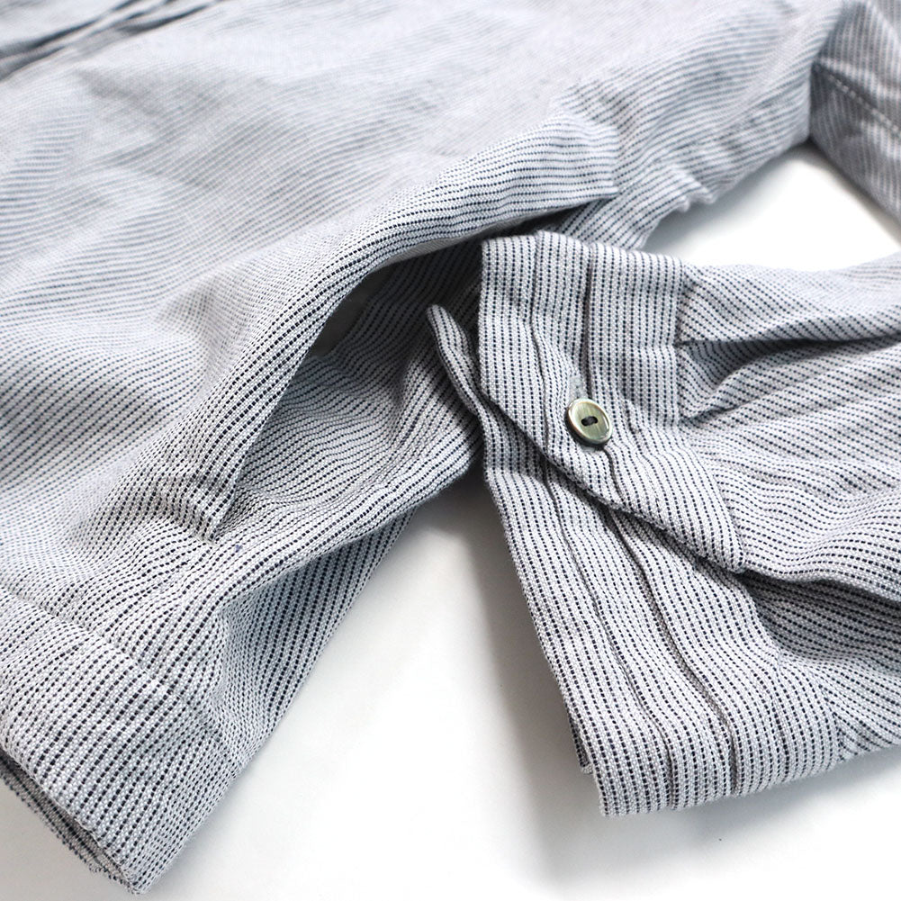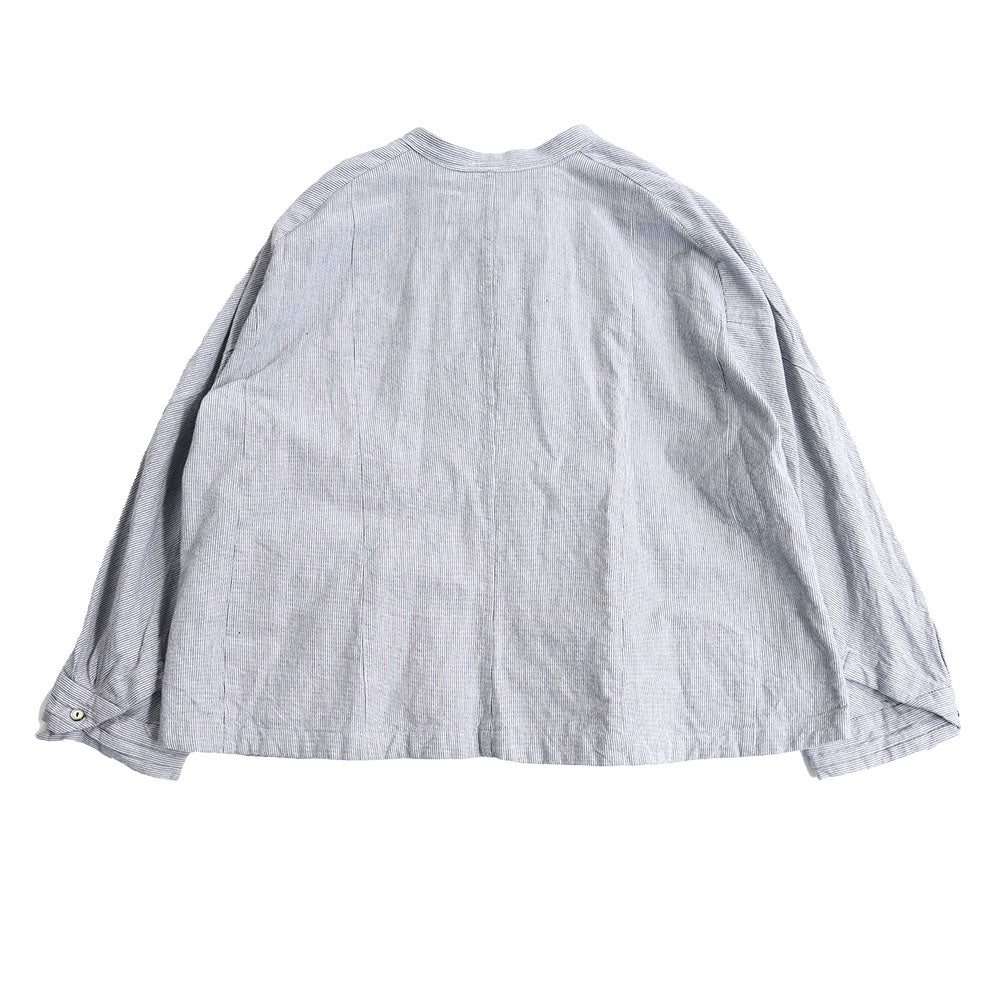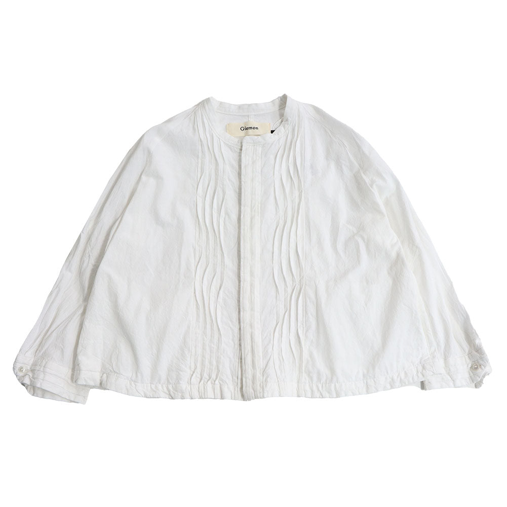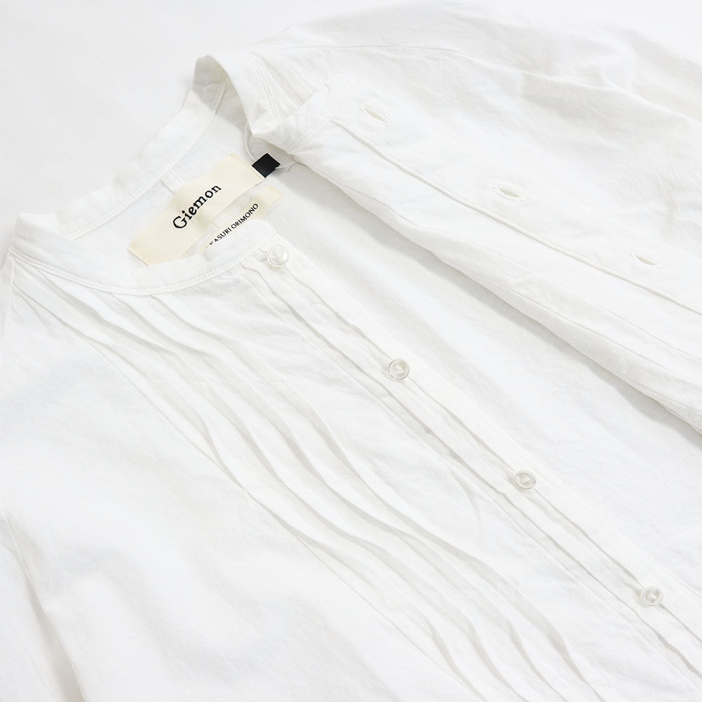 ピンタックを施した比翼仕立ての前開きブラウス。