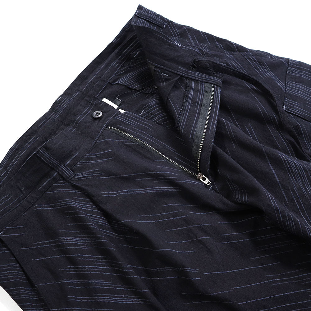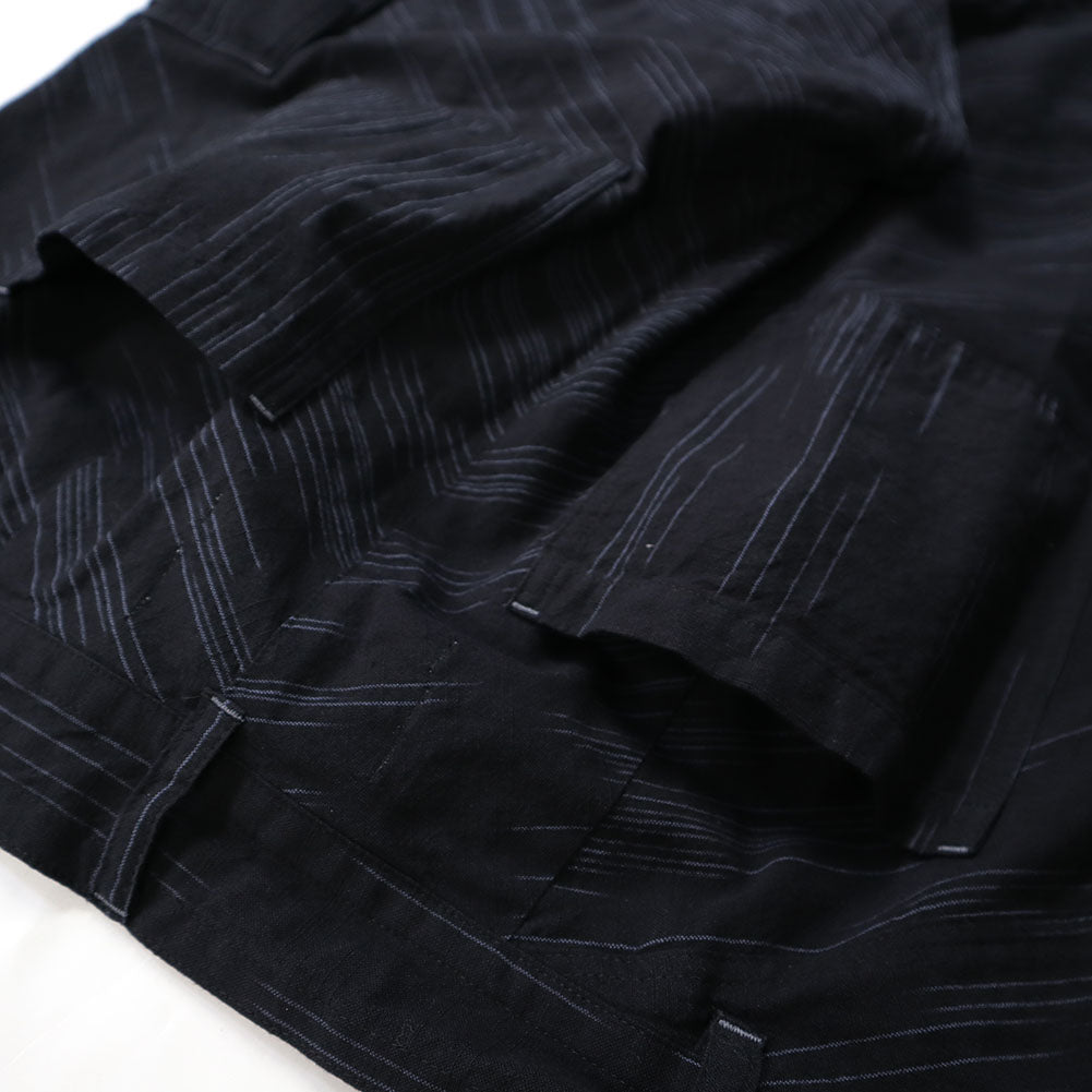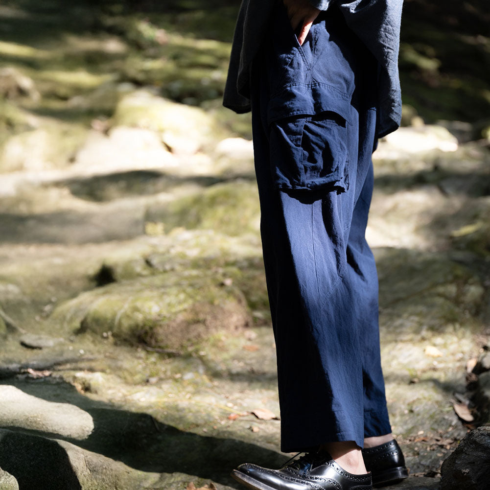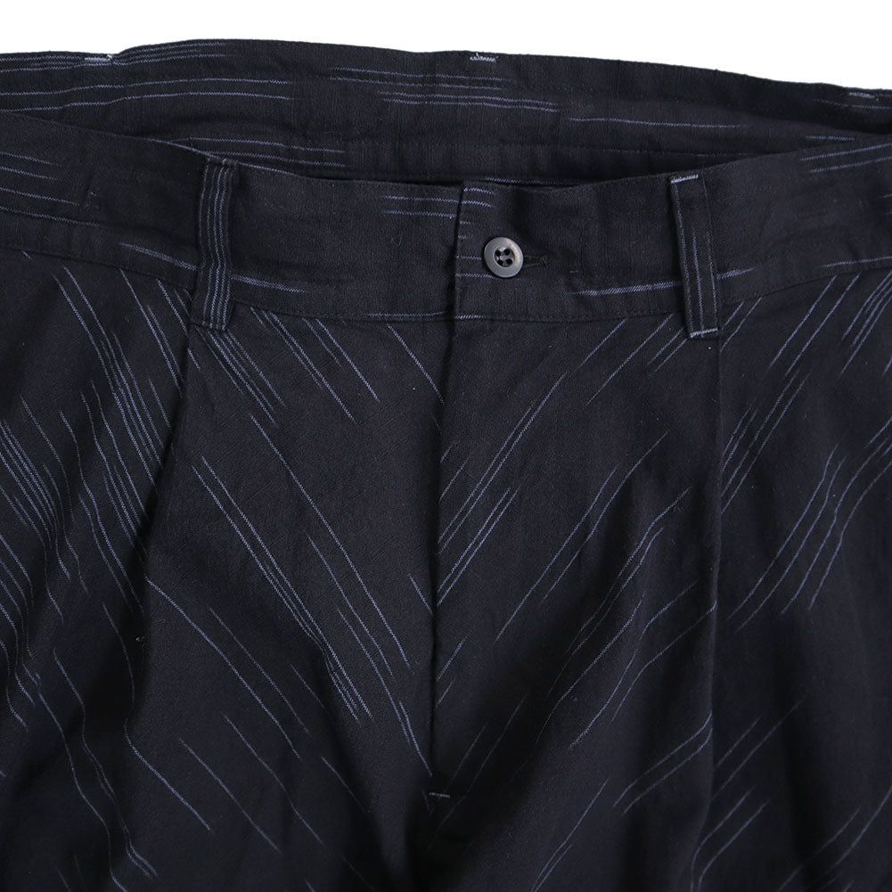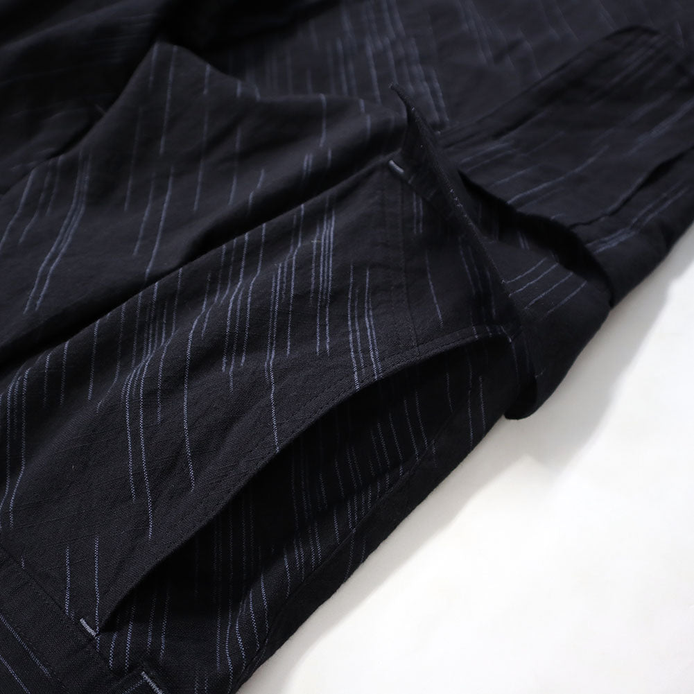 ゆとりのあるーパードシルエットの久留米絣テカーゴパンツ。
