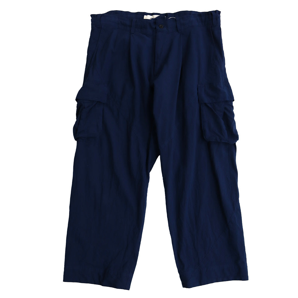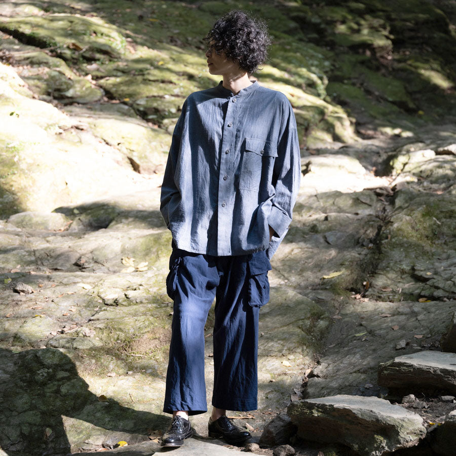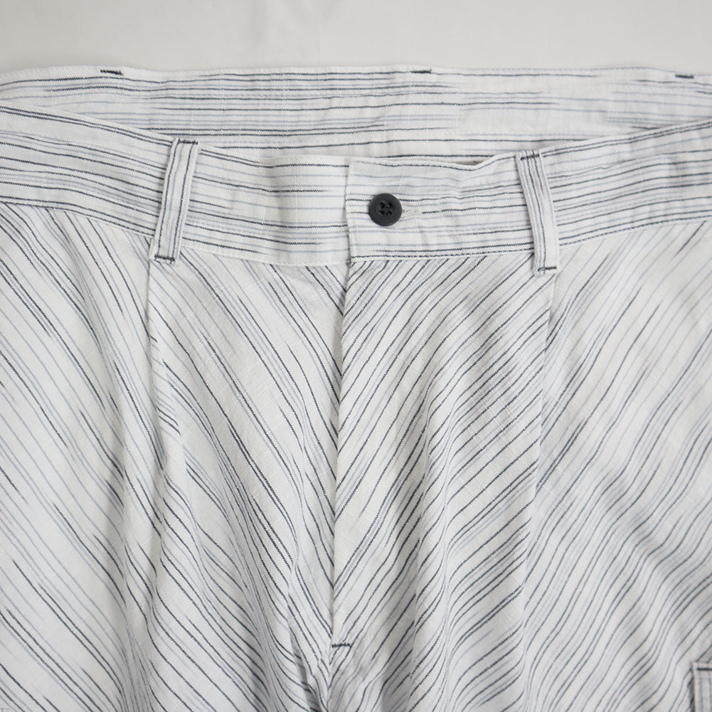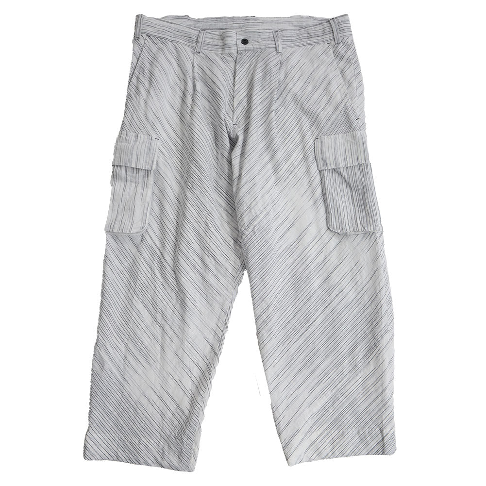 ゆとりのあるーパードシルエットの久留米絣テカーゴパンツ。