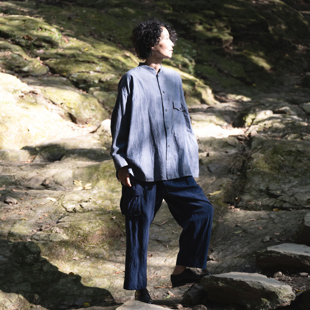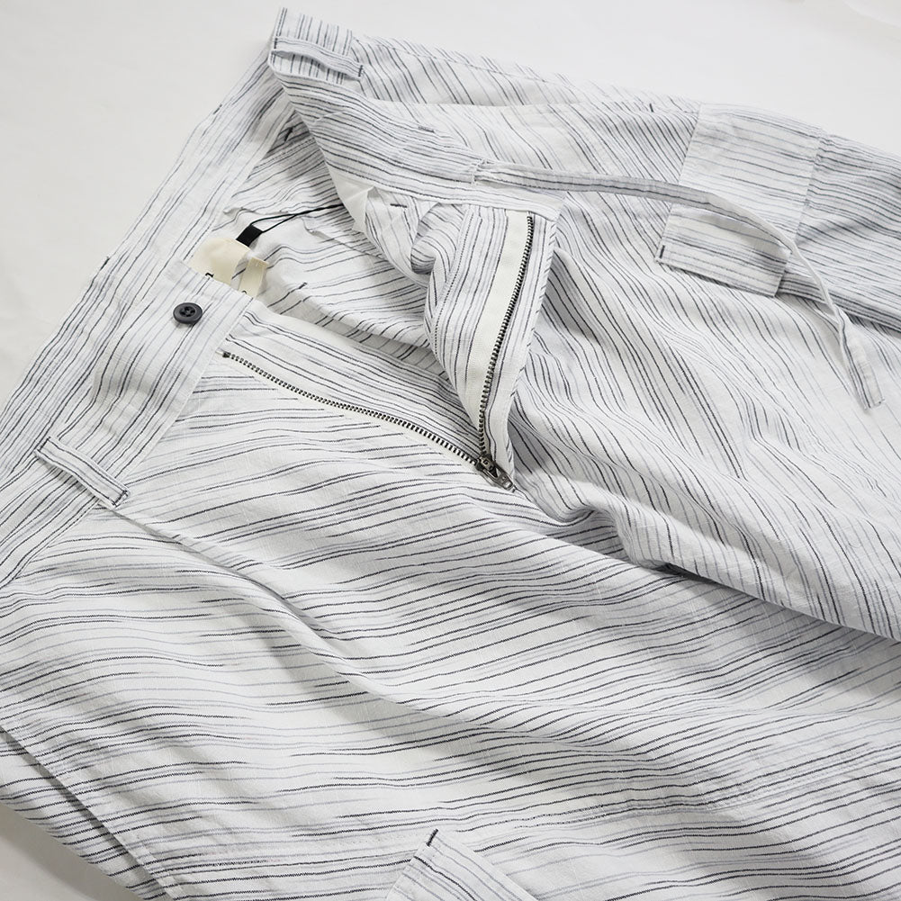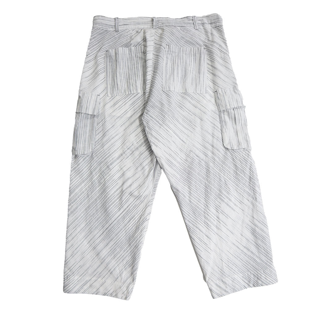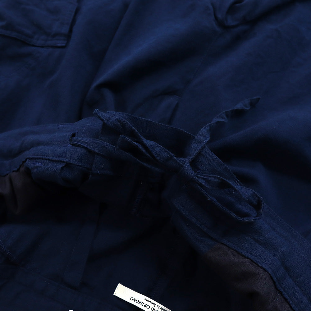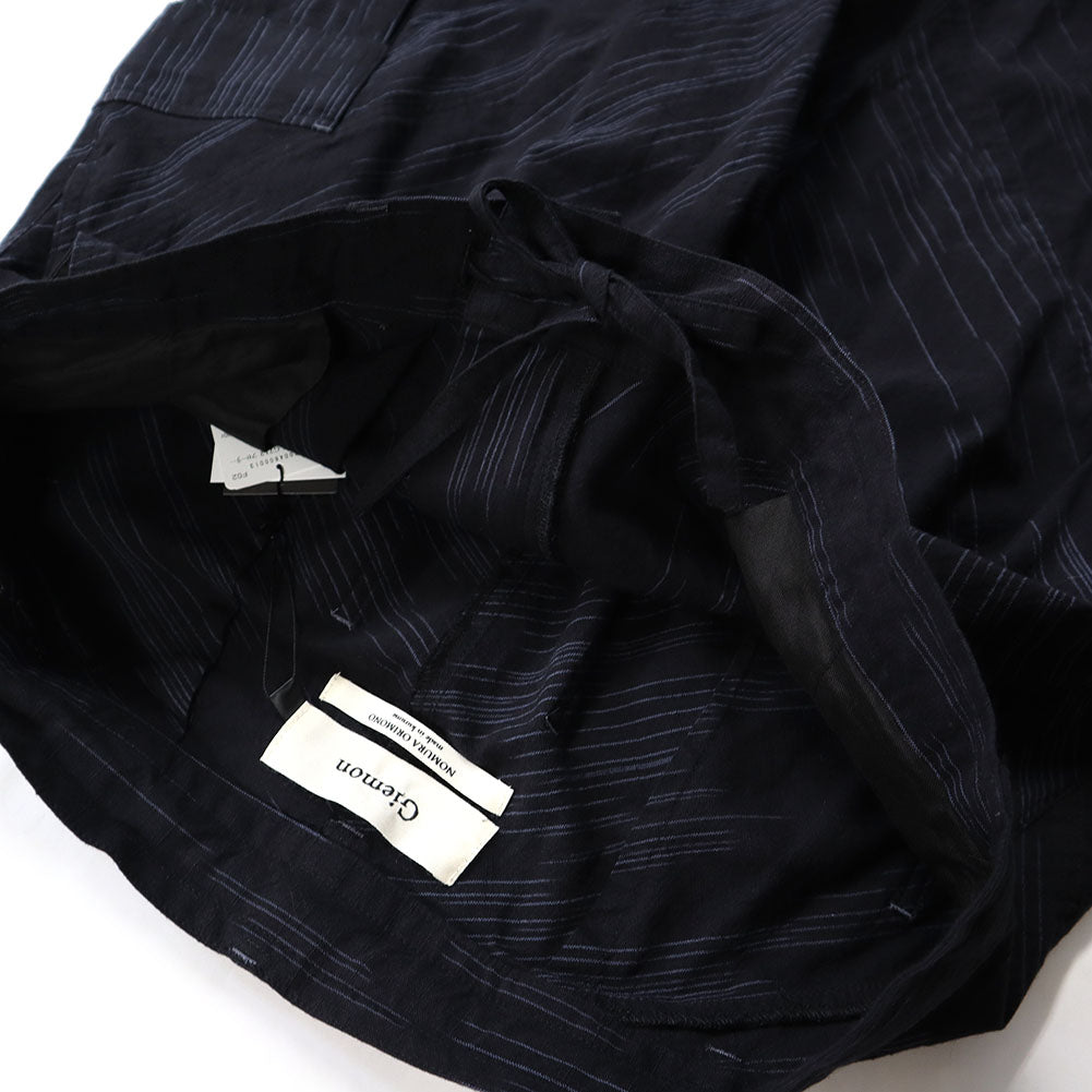 ゆとりのあるーパードシルエットの久留米絣テカーゴパンツ。