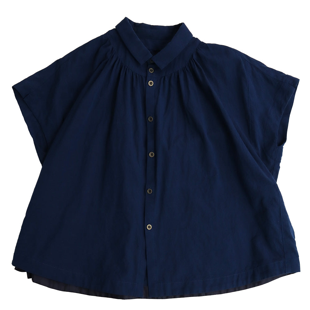 アンティークな雰囲気の衿元のヨークやギャザー、甘さのある小さめの華奢な衿がポイント。