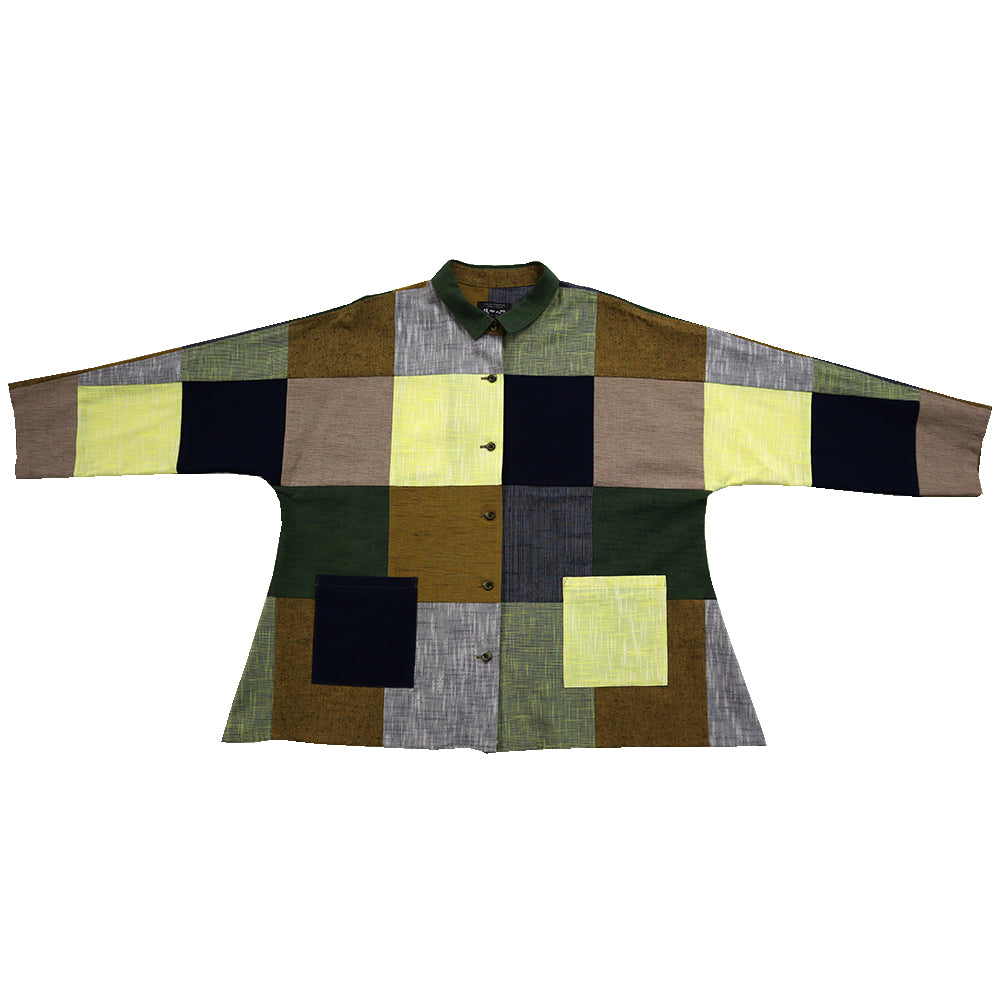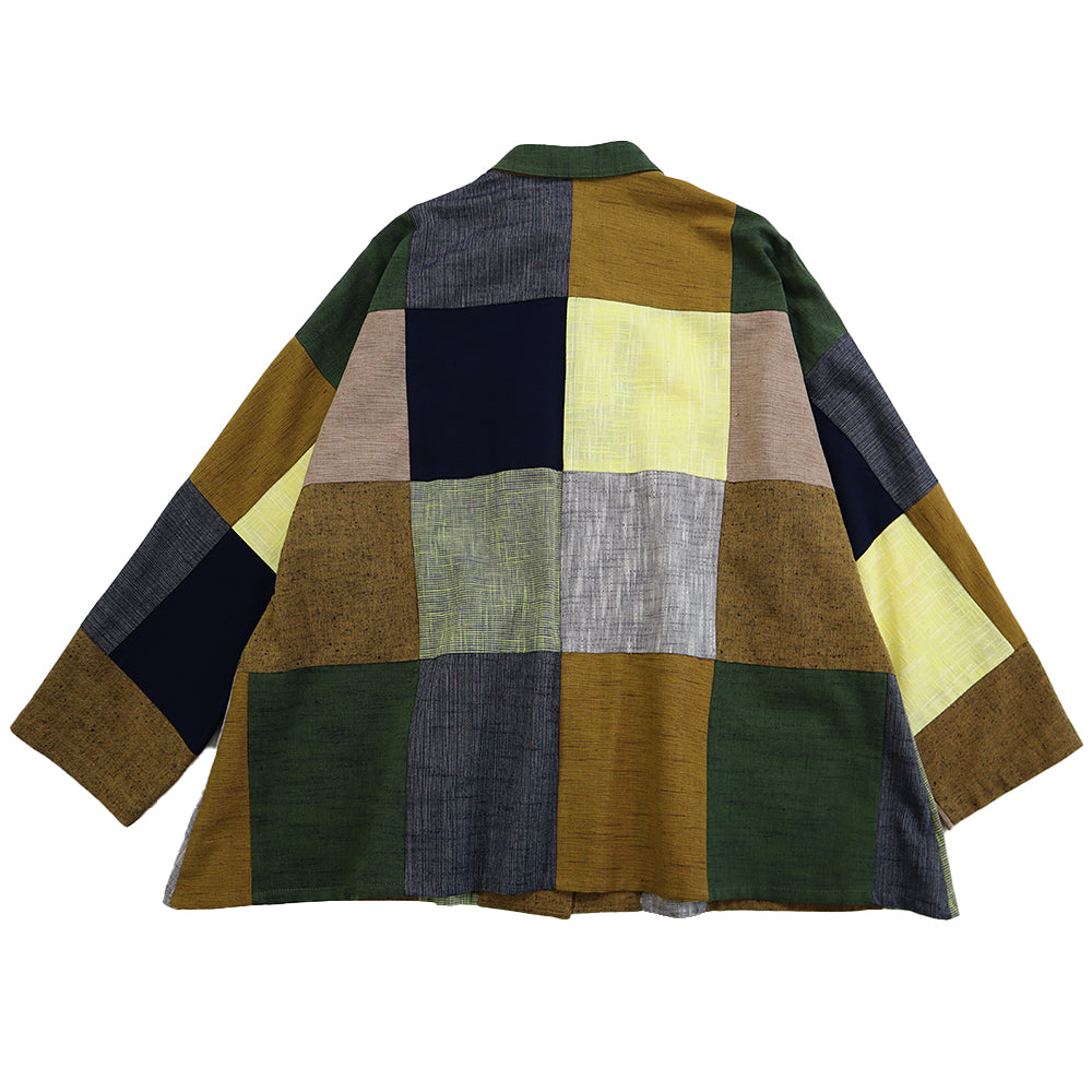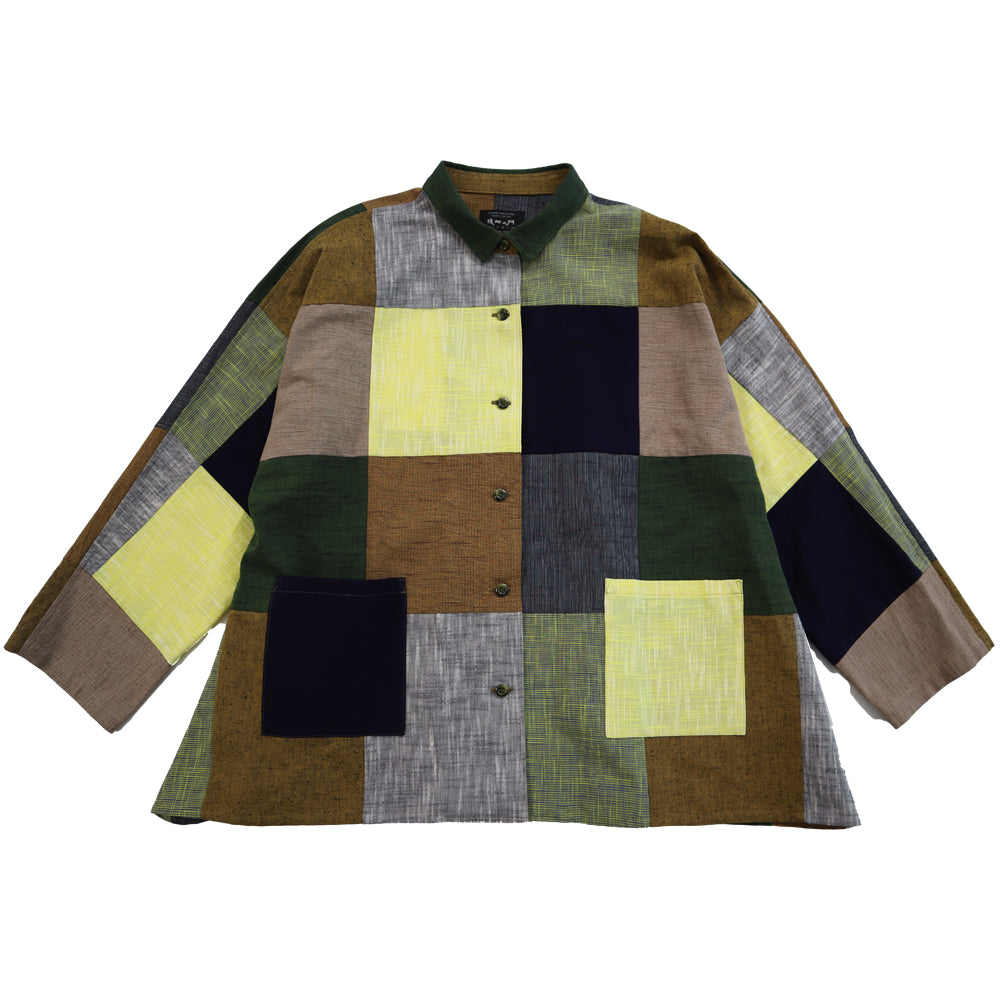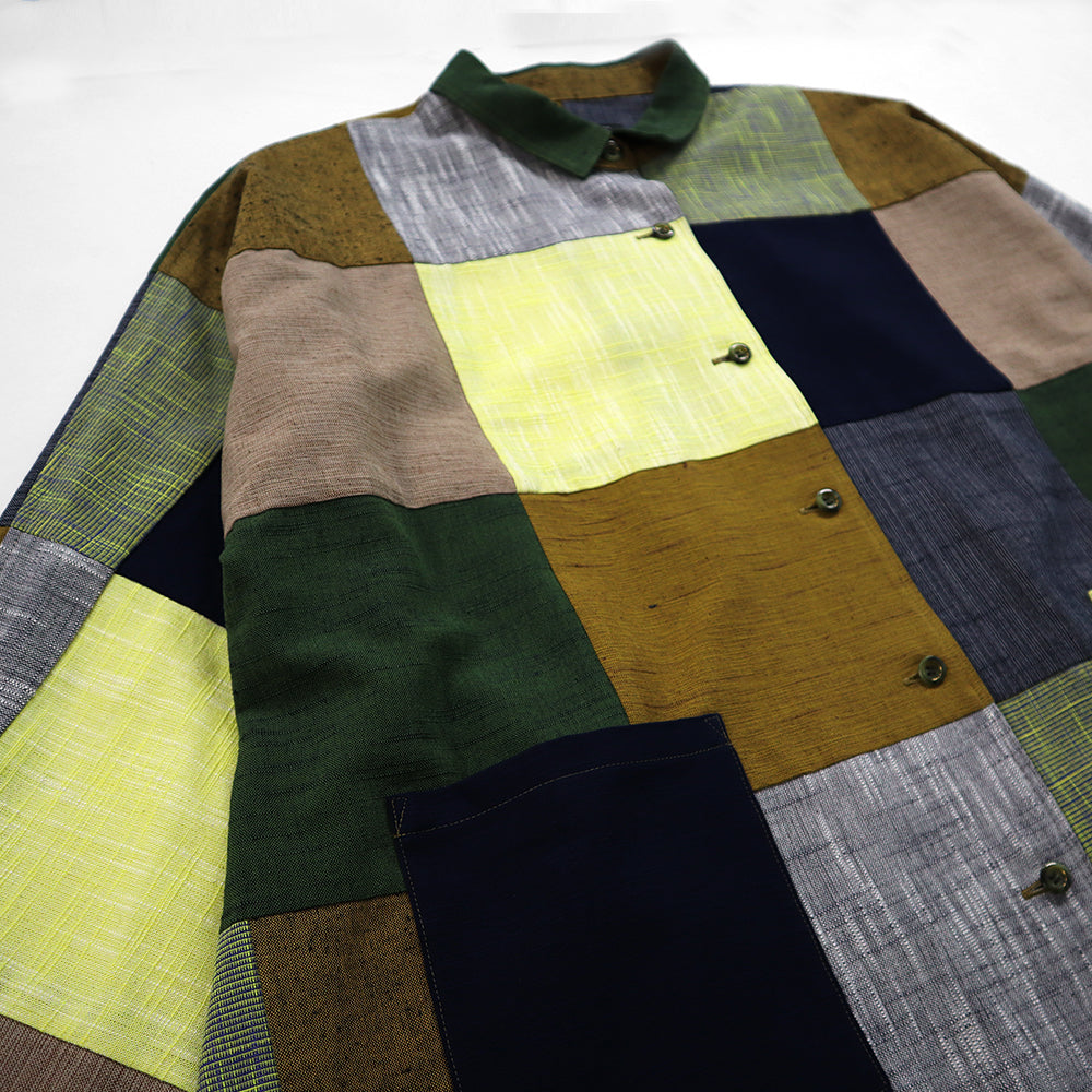 着やすいドルマンタイプで全体をパッチワークで仕上げました。