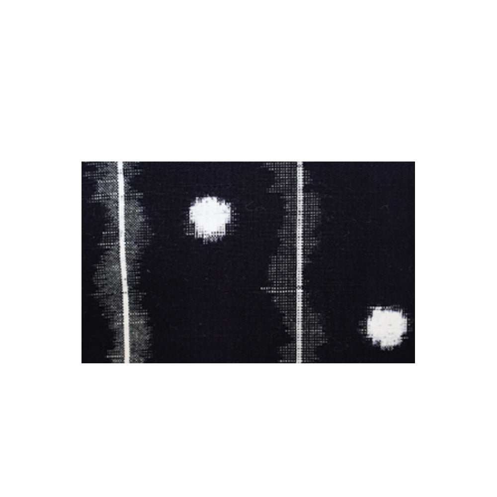 前面に反幅の1/2の久留米絣を主張する柄、背面、口布、ひも、ループひもは久留米絣の