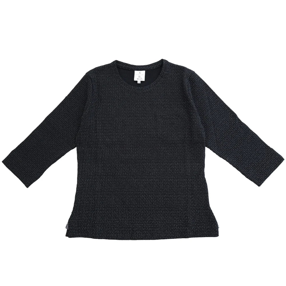 柔らかで肌触りの良い米粒柄のワッフル生地を使用したカットソーは、単体での着用はもとより、色柄豊富な久留米絣生地とも相性バツグン。