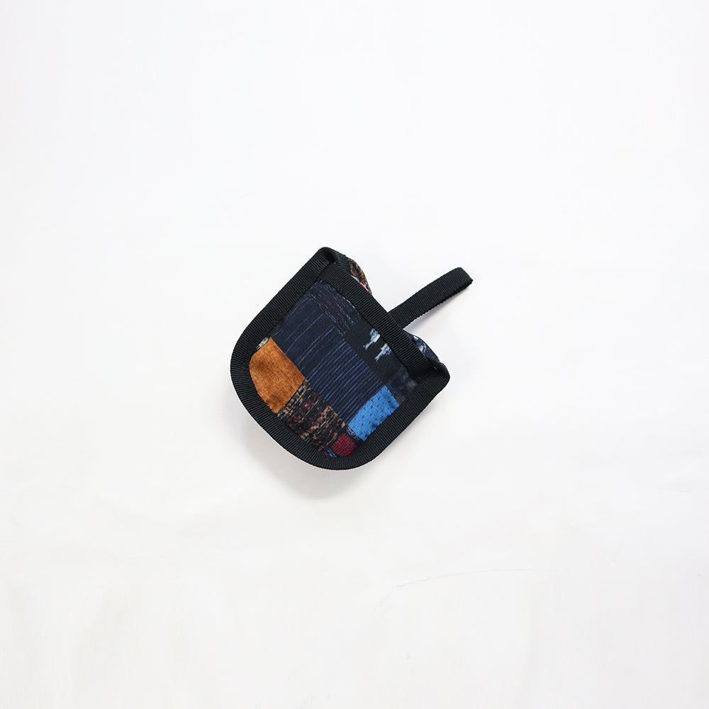 このテキスタイルは、1998年に結婚式の引き出物だった「117の久留米絣を繋ぎ合わせたパッチワークの掛布」を現代に蘇らせる為にインクジェットというプリントの技法に基づき、1/3の大きさまで縮小し、小さい小物まで作れるようにリデザインしました。