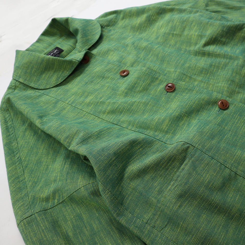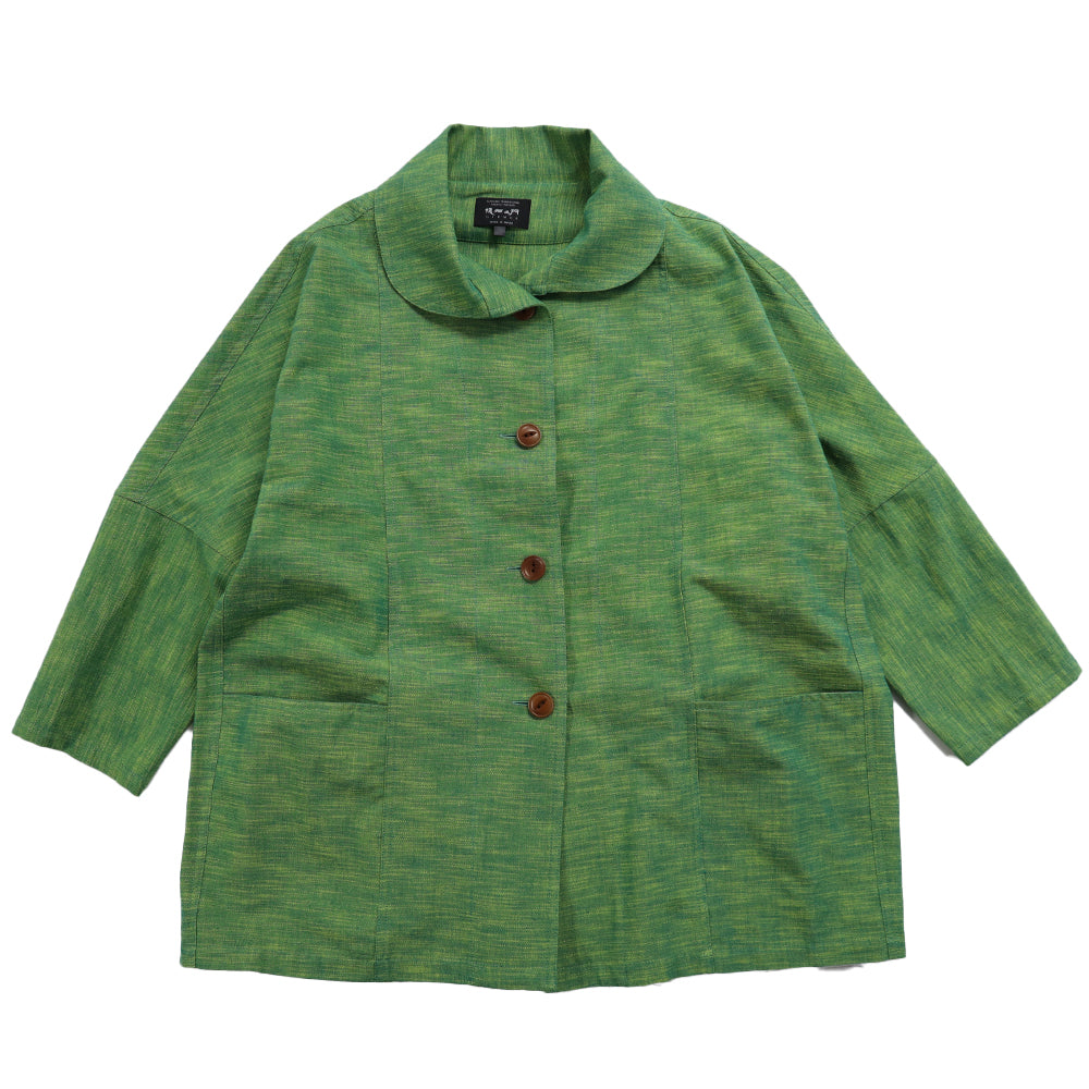 まだ肌寒い時期に欲しいJK感覚のブラウス。ゆったりとした身巾感とドルマンスリーブのバランスが程よく、衿や後のヨークの切り替えを丸くカーブにすることでかわいらしい1枚に仕上がっています。