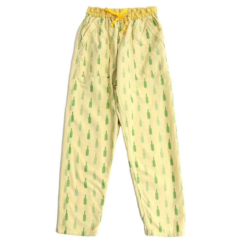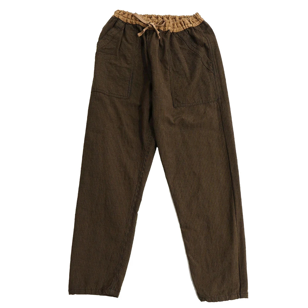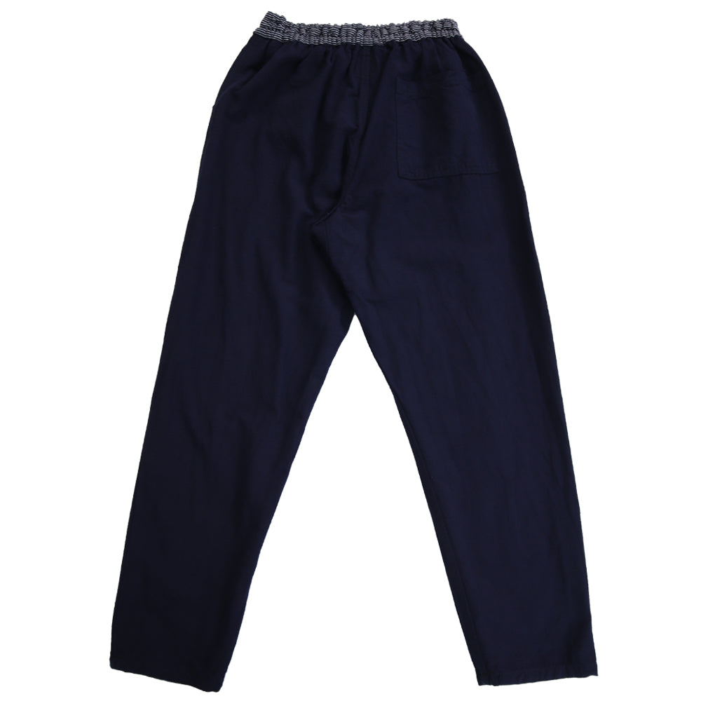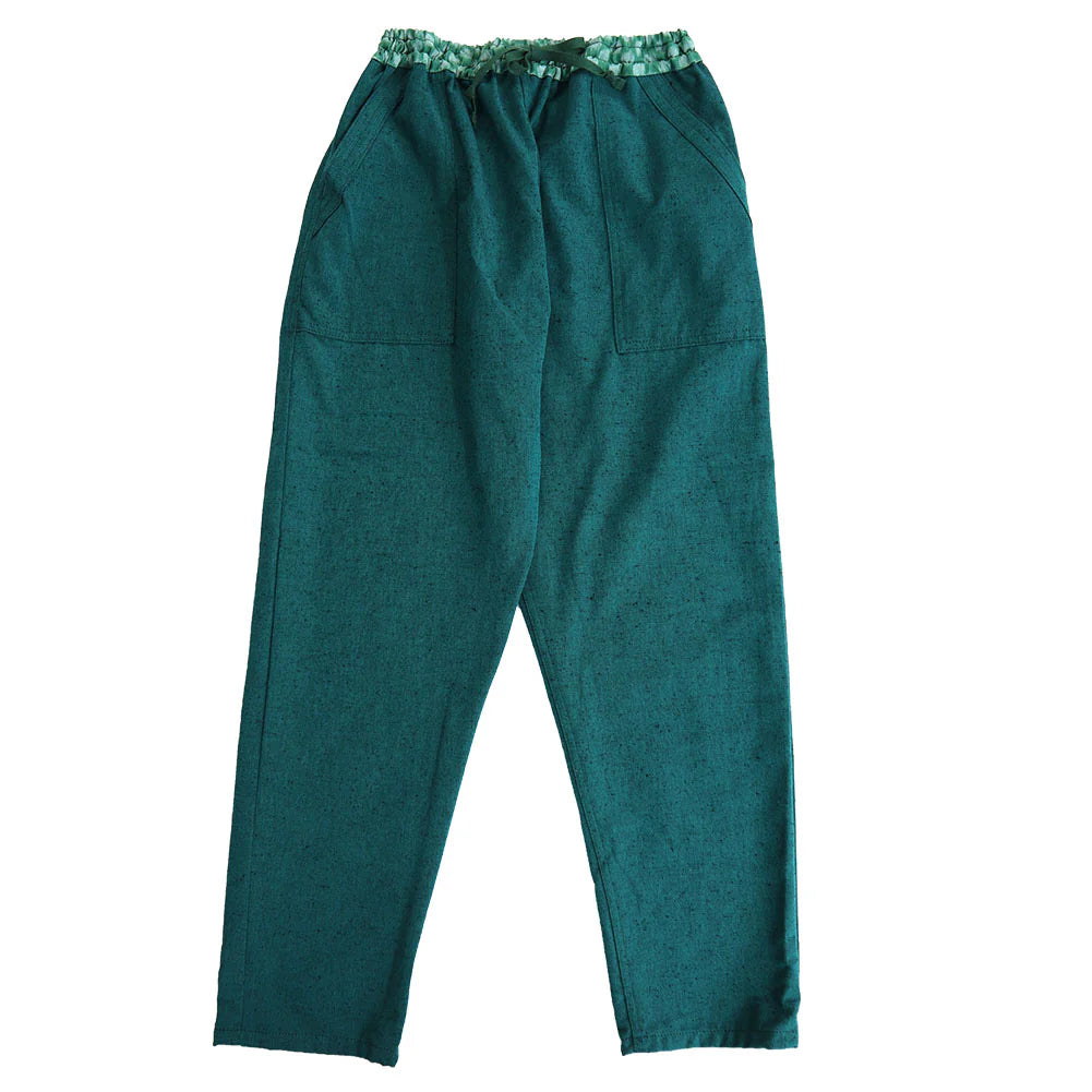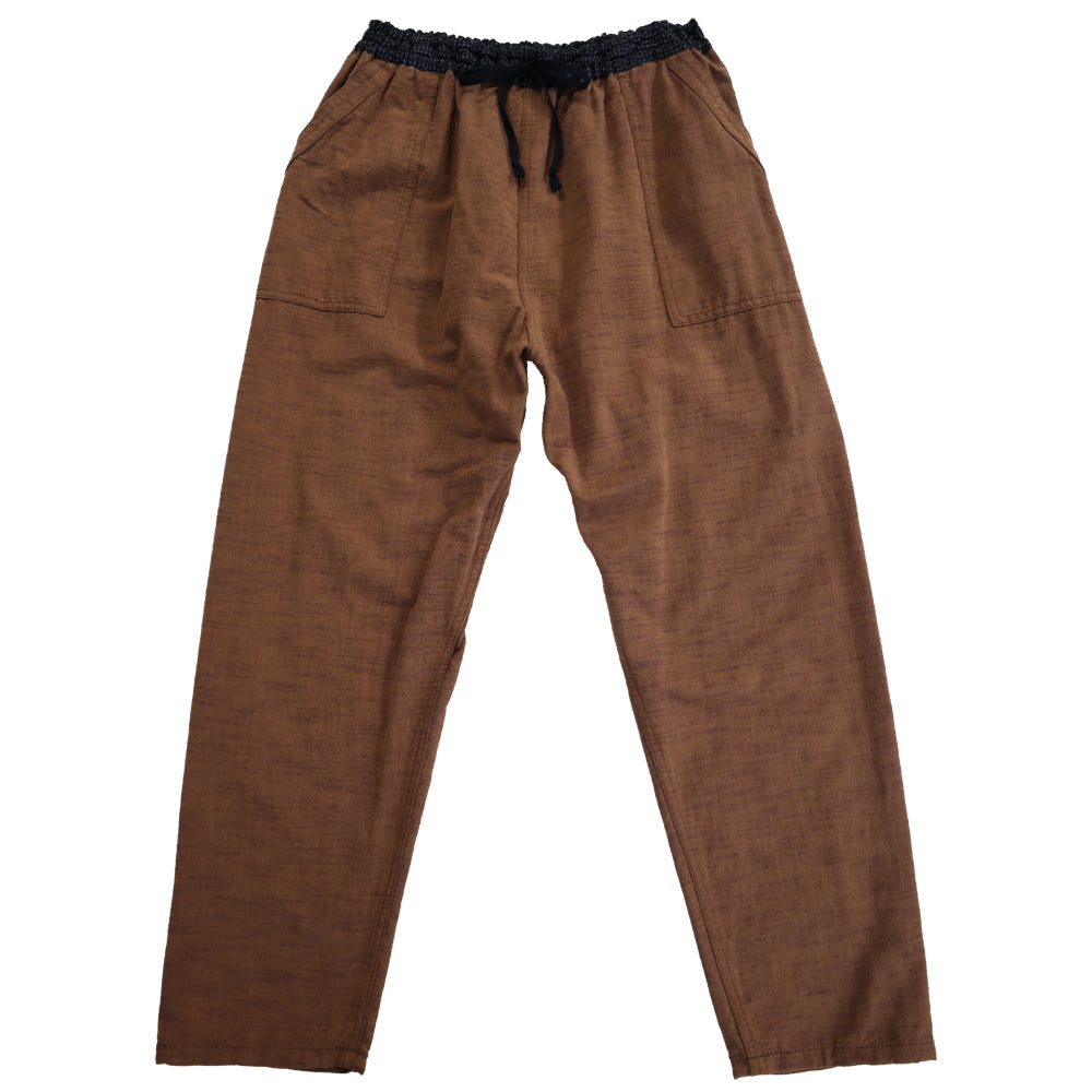 • 左右両側と、バックポケットが1つの合計3つのポケットがあるデザイン。ウエストは紐ありでサイズを絞ることもできます。ルームウェアとしてはもとよりお出かけにもお使いいただける万能パンツです。