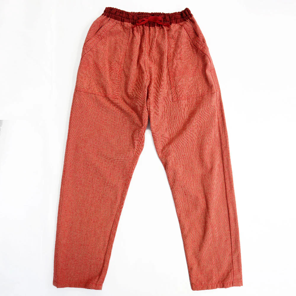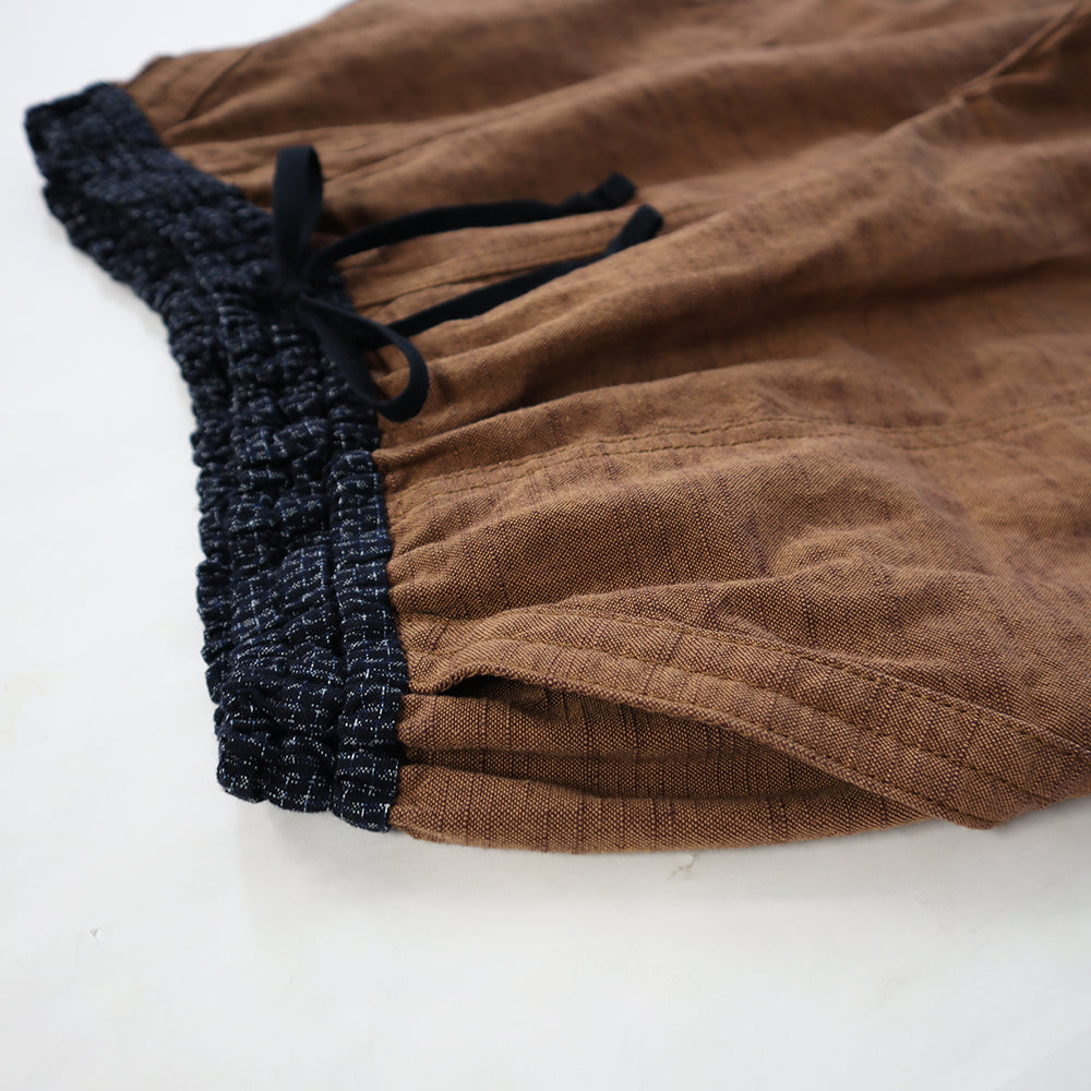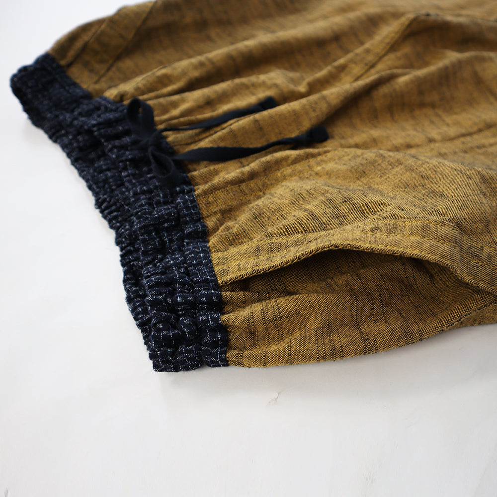 • 久留米絣の新定番「もんぱん」です。履きやすく動きやすいもんぺの良さはそのままにパンツ感覚で使える現代風のデザインを取り入れました。ゆったりと気持ちいいリラックスウエアです。