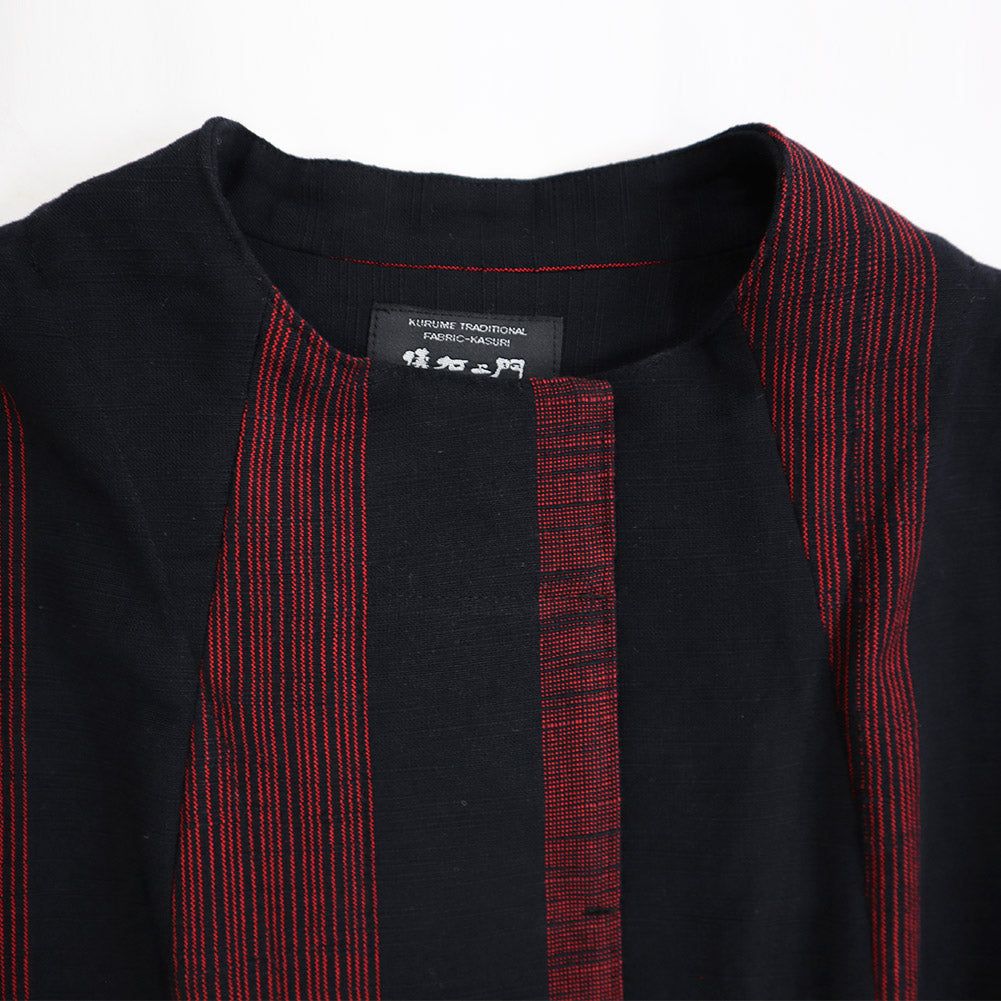 久留米絣生地をたっぷりと使った優雅なワンピース。