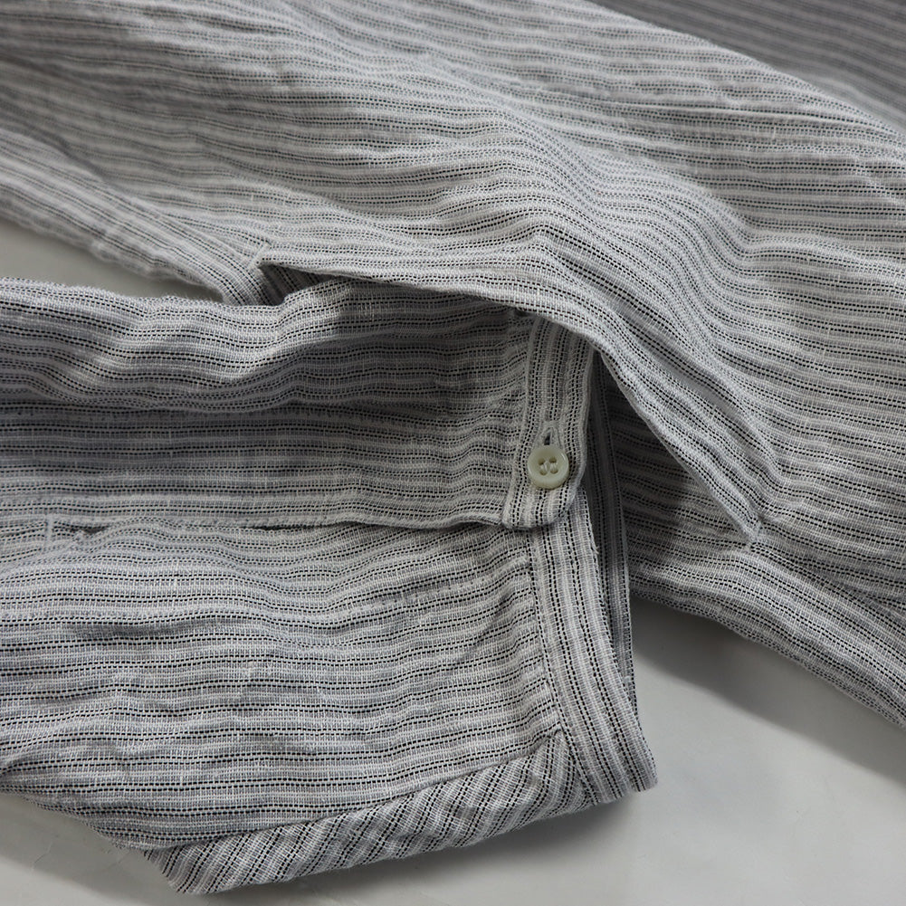 素材:(爽綿麻 小縞 白/黒グレー 、 爽綿麻 小縞 杢濃紺/白グレー) 麻54% 綿46%