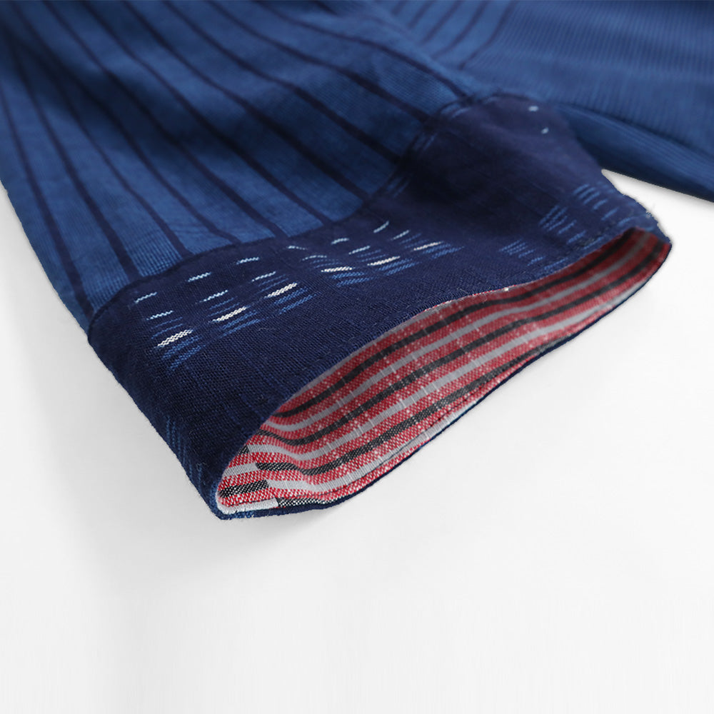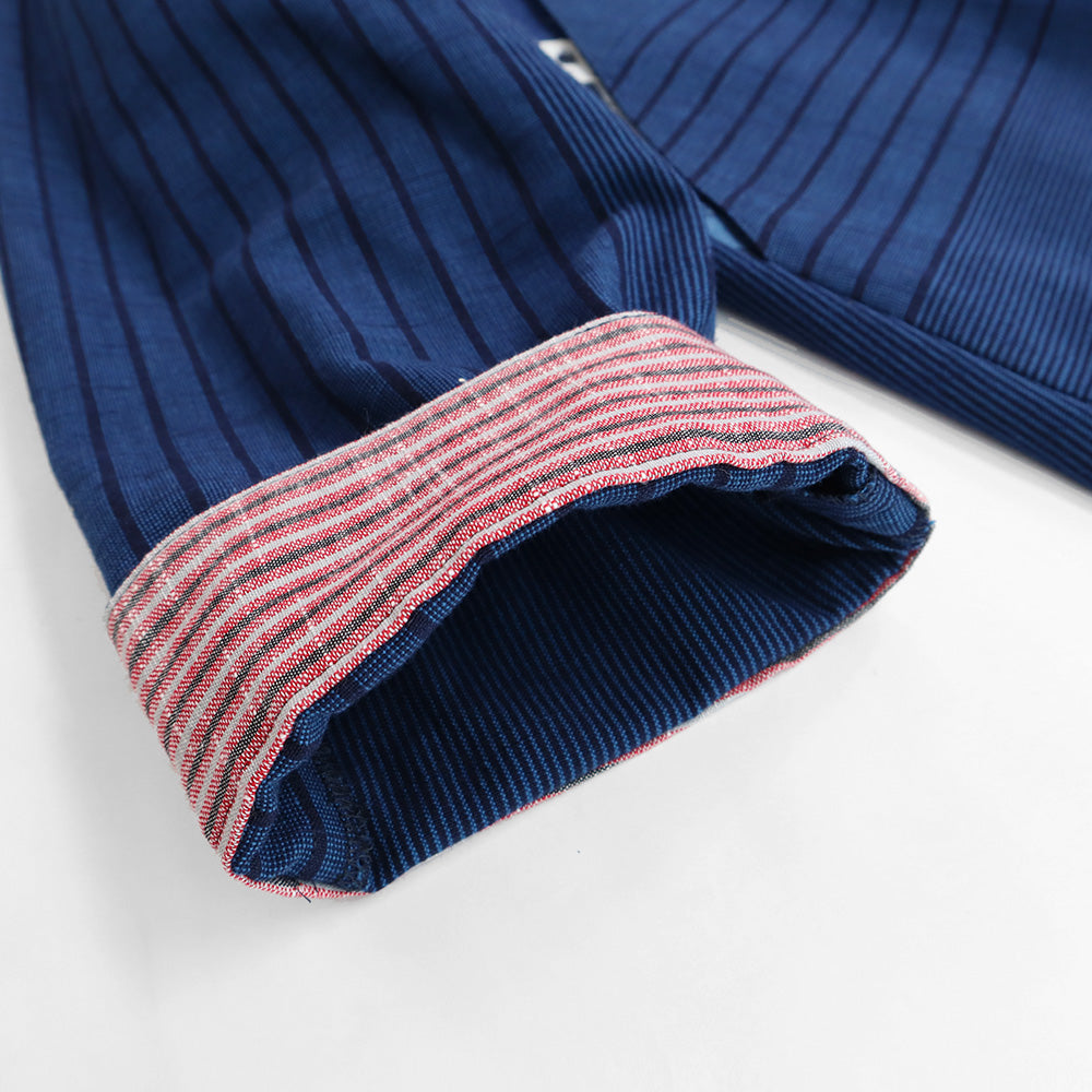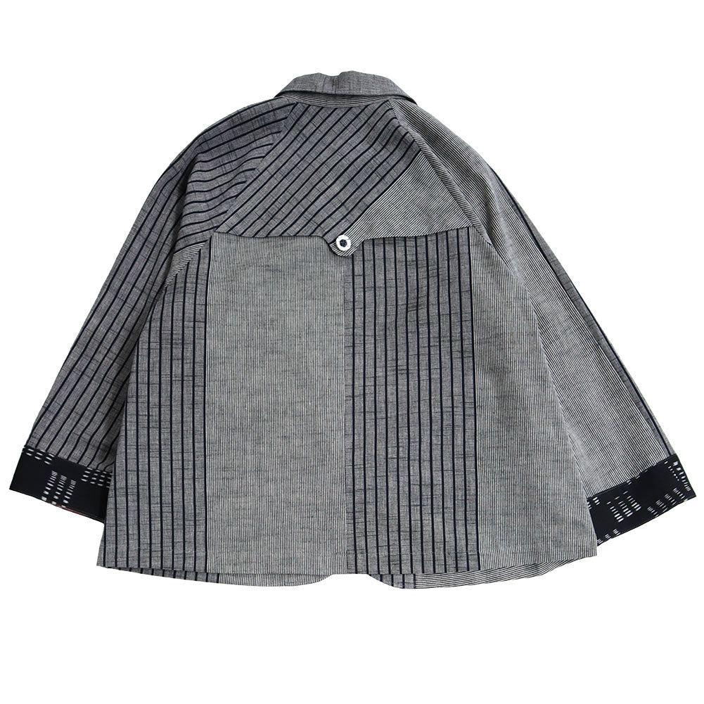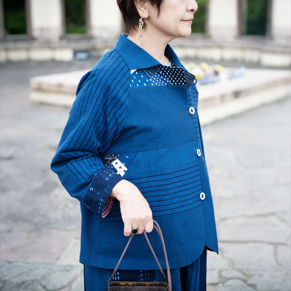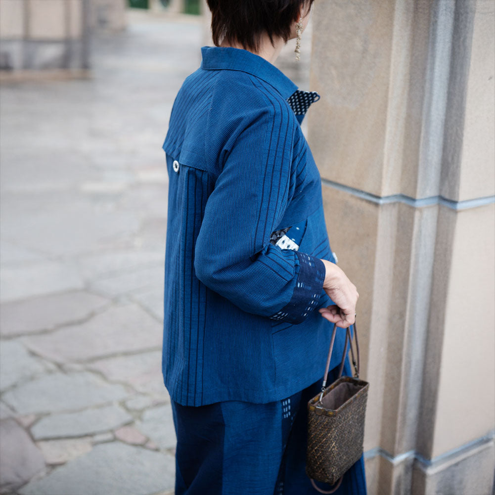 身頃の生地をタテヨコに取り複雑な印象で儀右エ門ならではの仕上がりです。