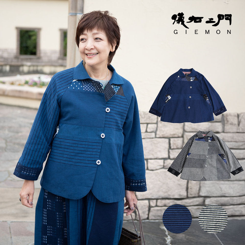 儀右ヱ門 ギエモン ぎえもん 久留米絣 パッチワークジャケット ケ154 日本製【2025ss】
