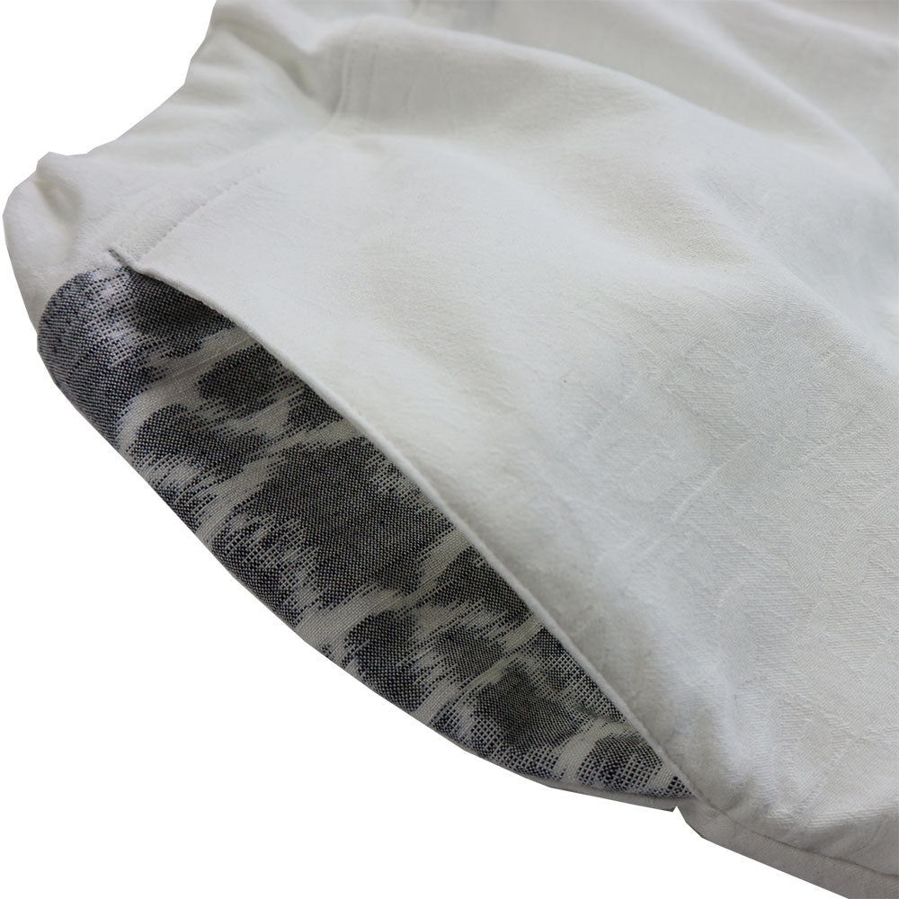 素材:本体(綿59% ポリエステル35% ポリウレタン6%) 別布久留米絣部分(綿100%)