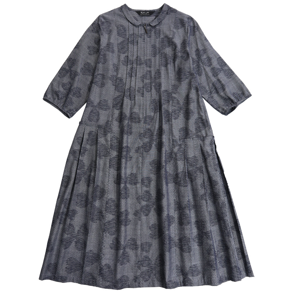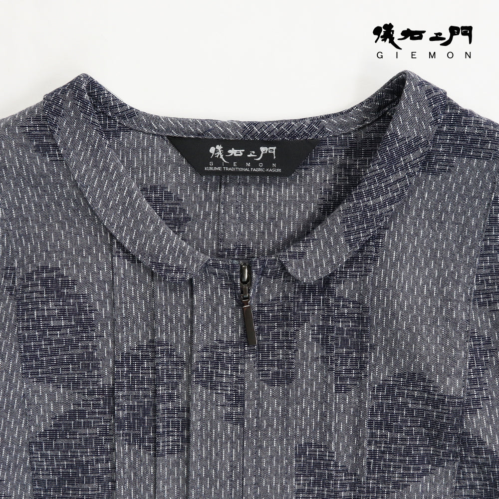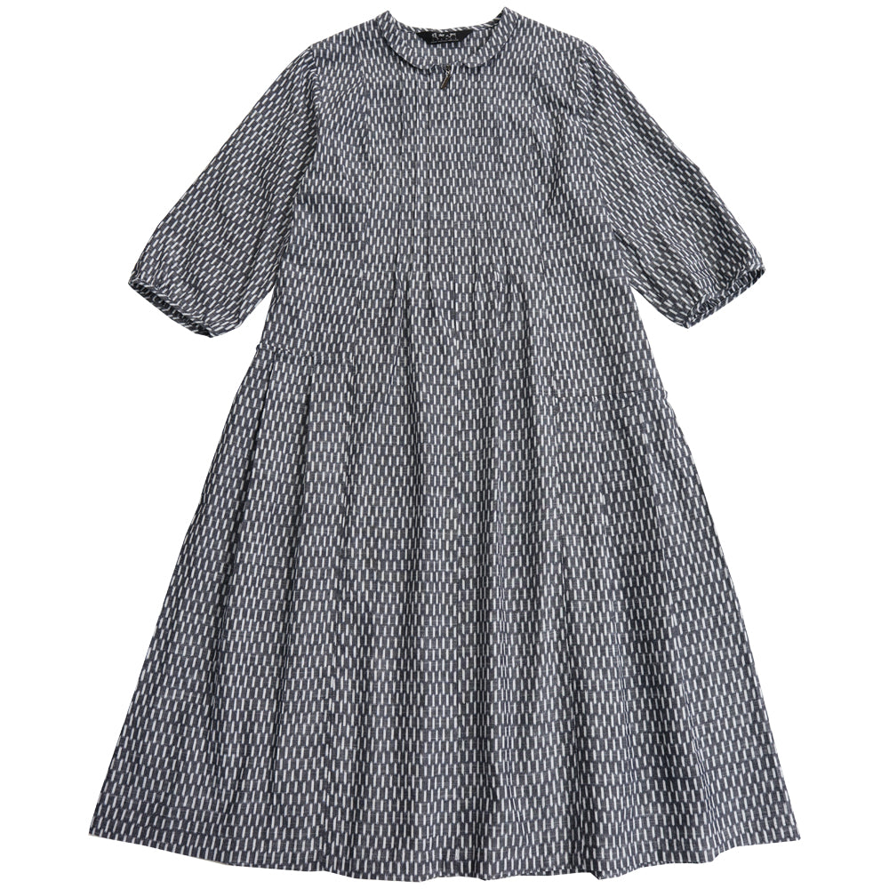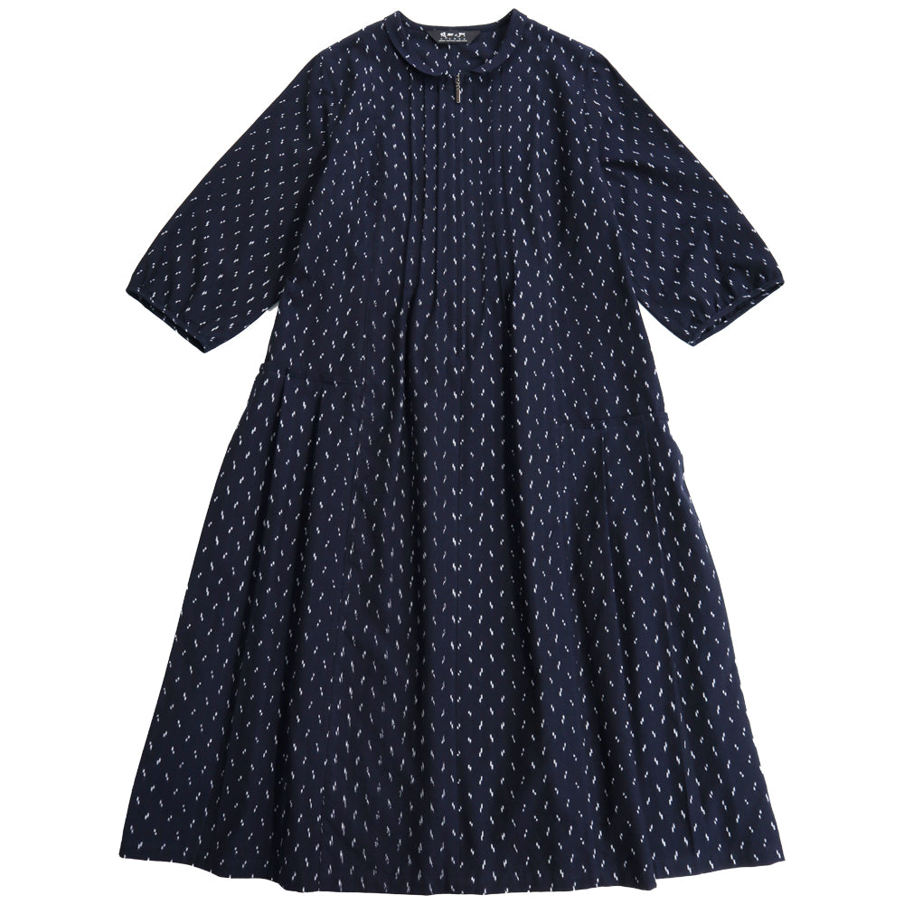 儀右ヱ門 ギエモン ぎえもん 久留米絣ランダムタック ワンピース 七分袖 シ219 日本製