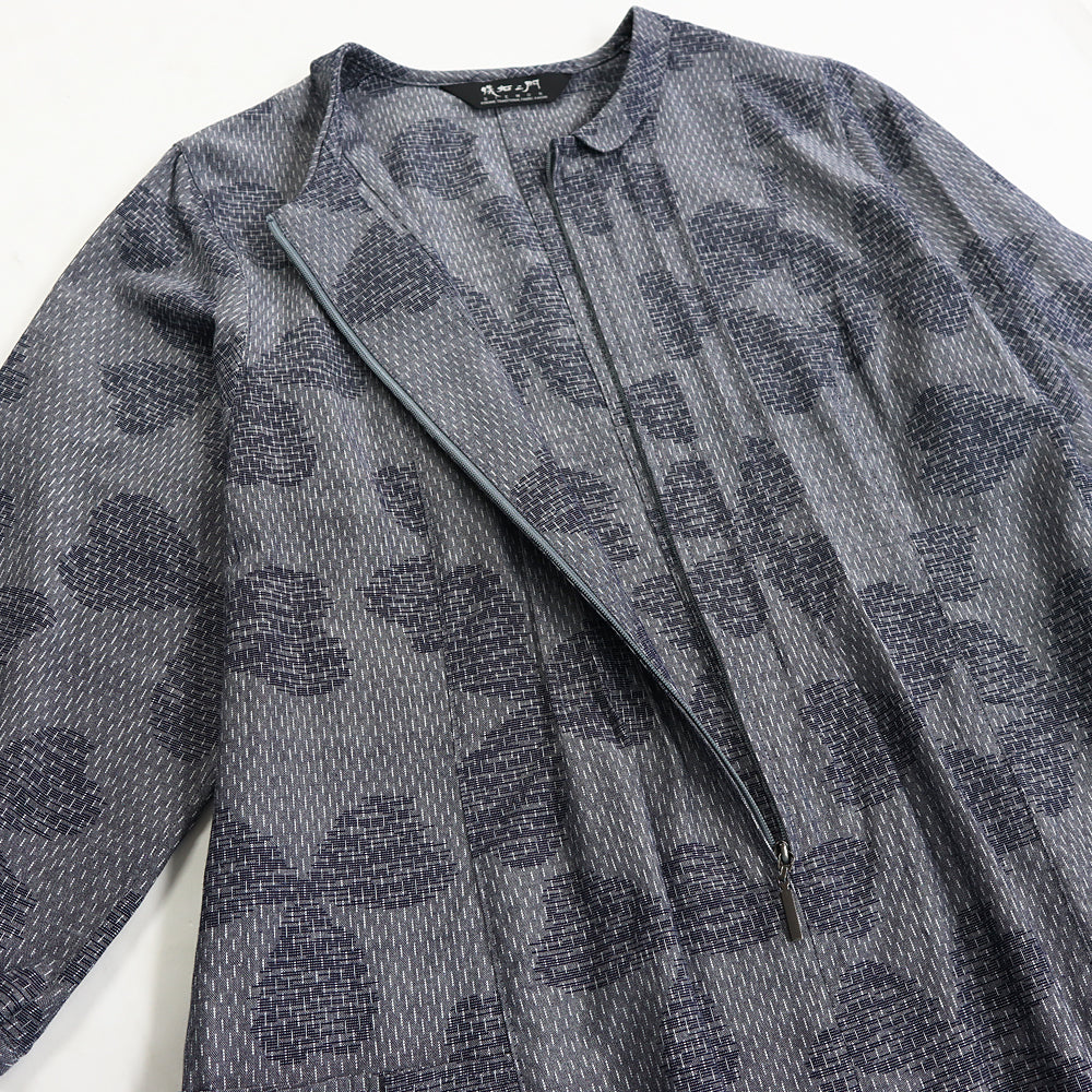 衿は小さめのショールカラーで、なだらかで柔らかい雰囲気。