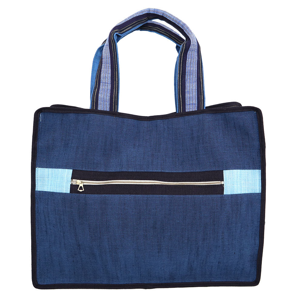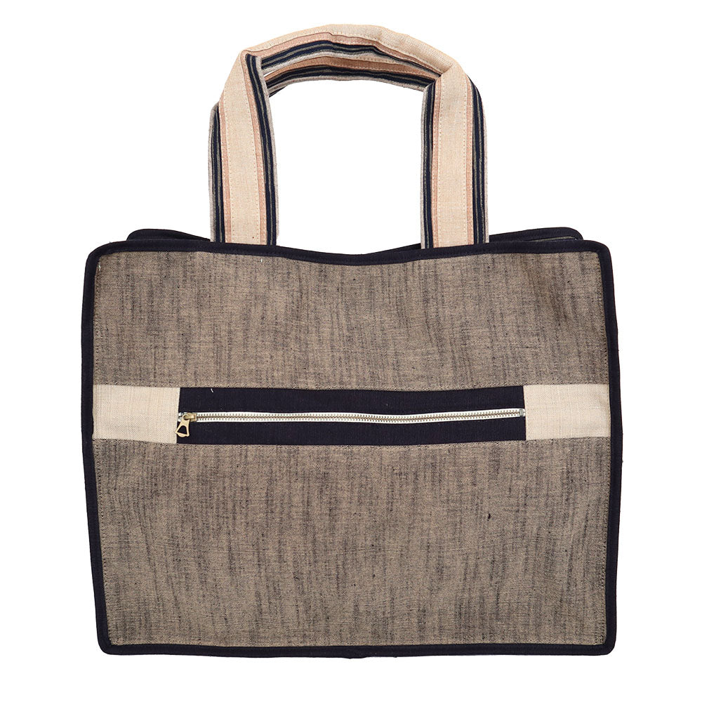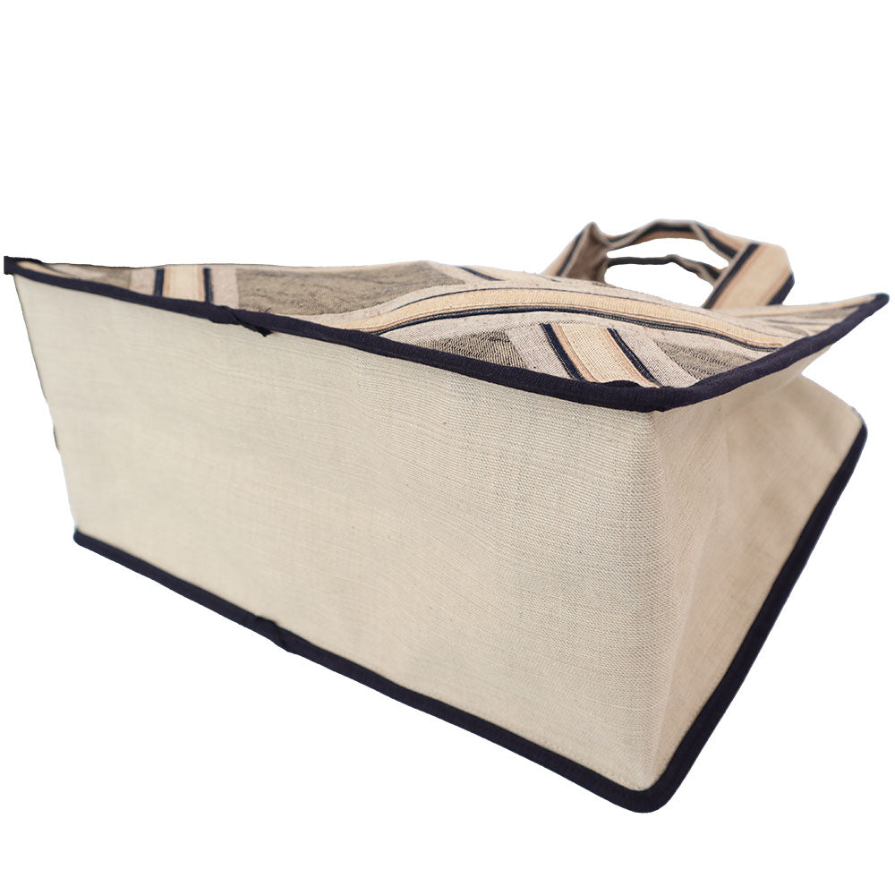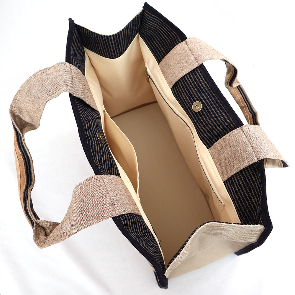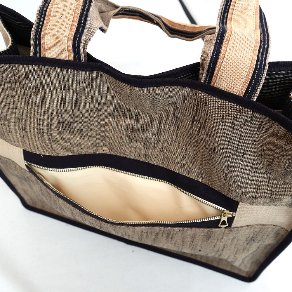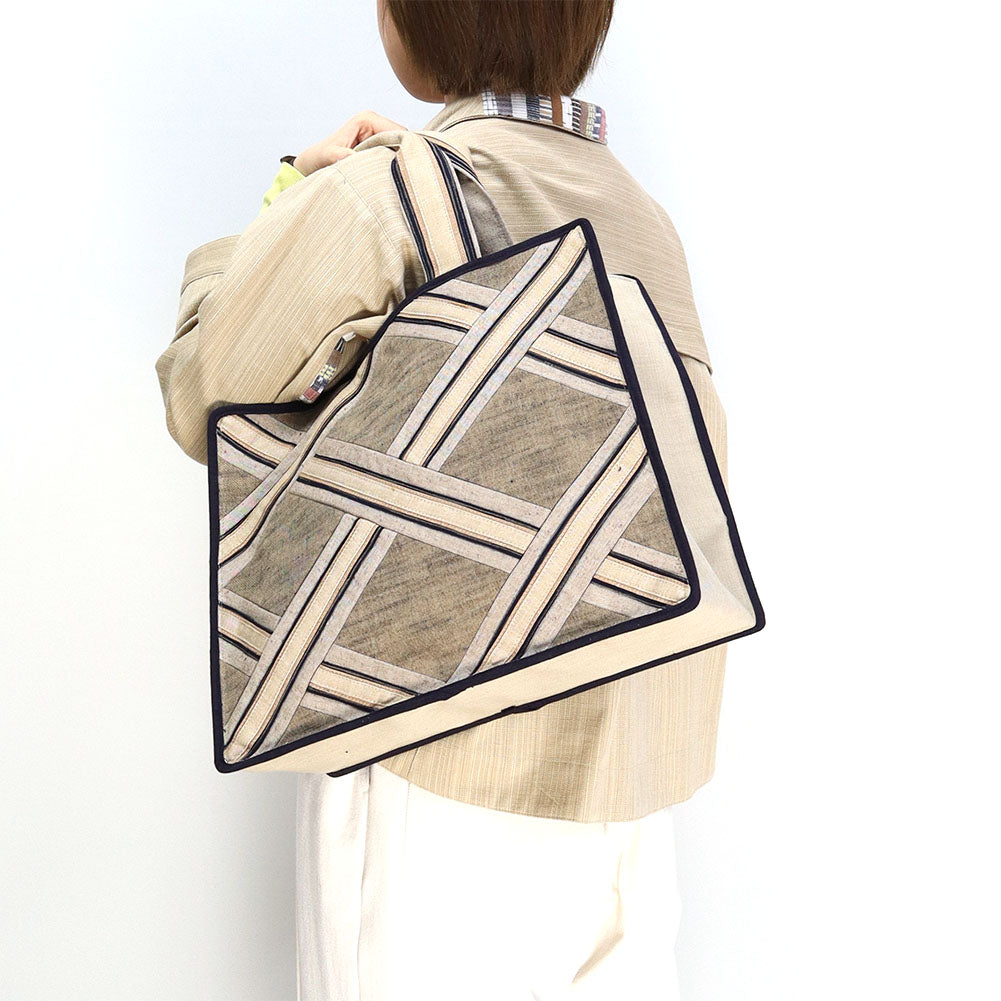 本体前面に、かご編みをモチーフに儀右ェ衛門らしいパッチワークを施した横型トートです。
