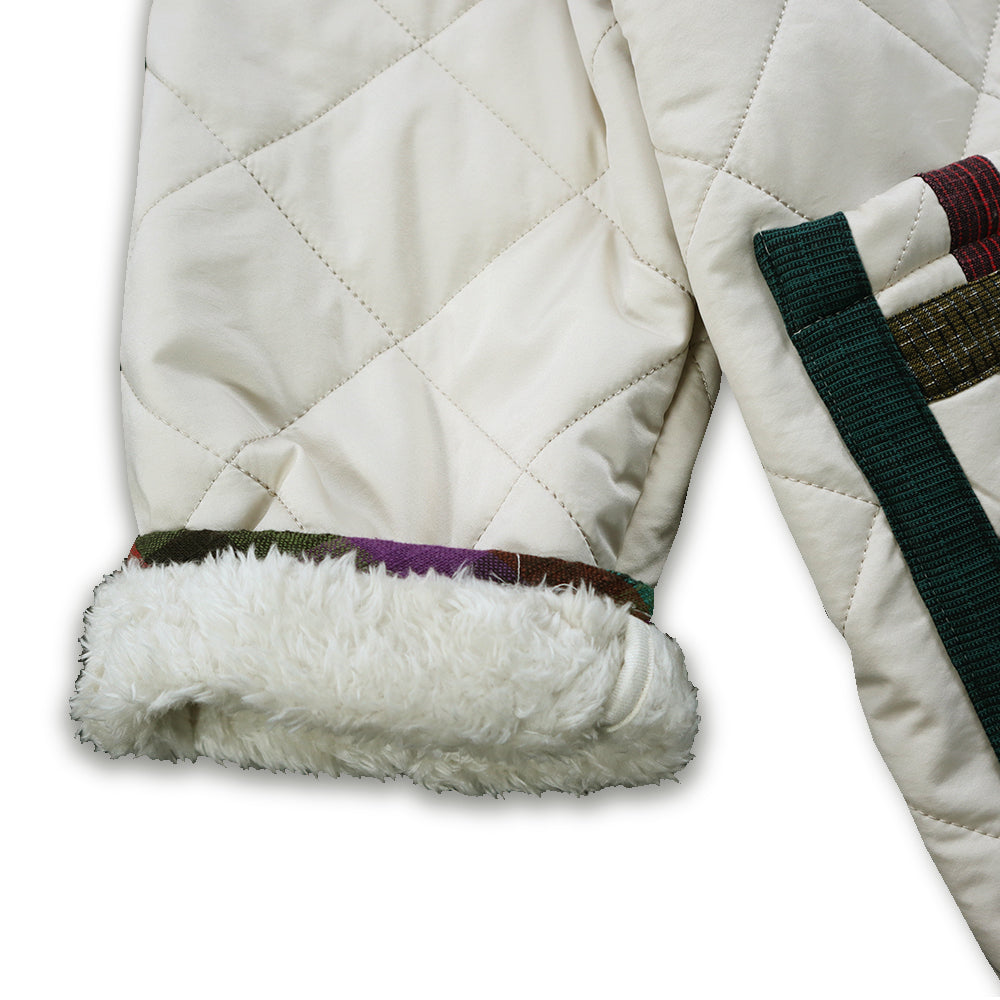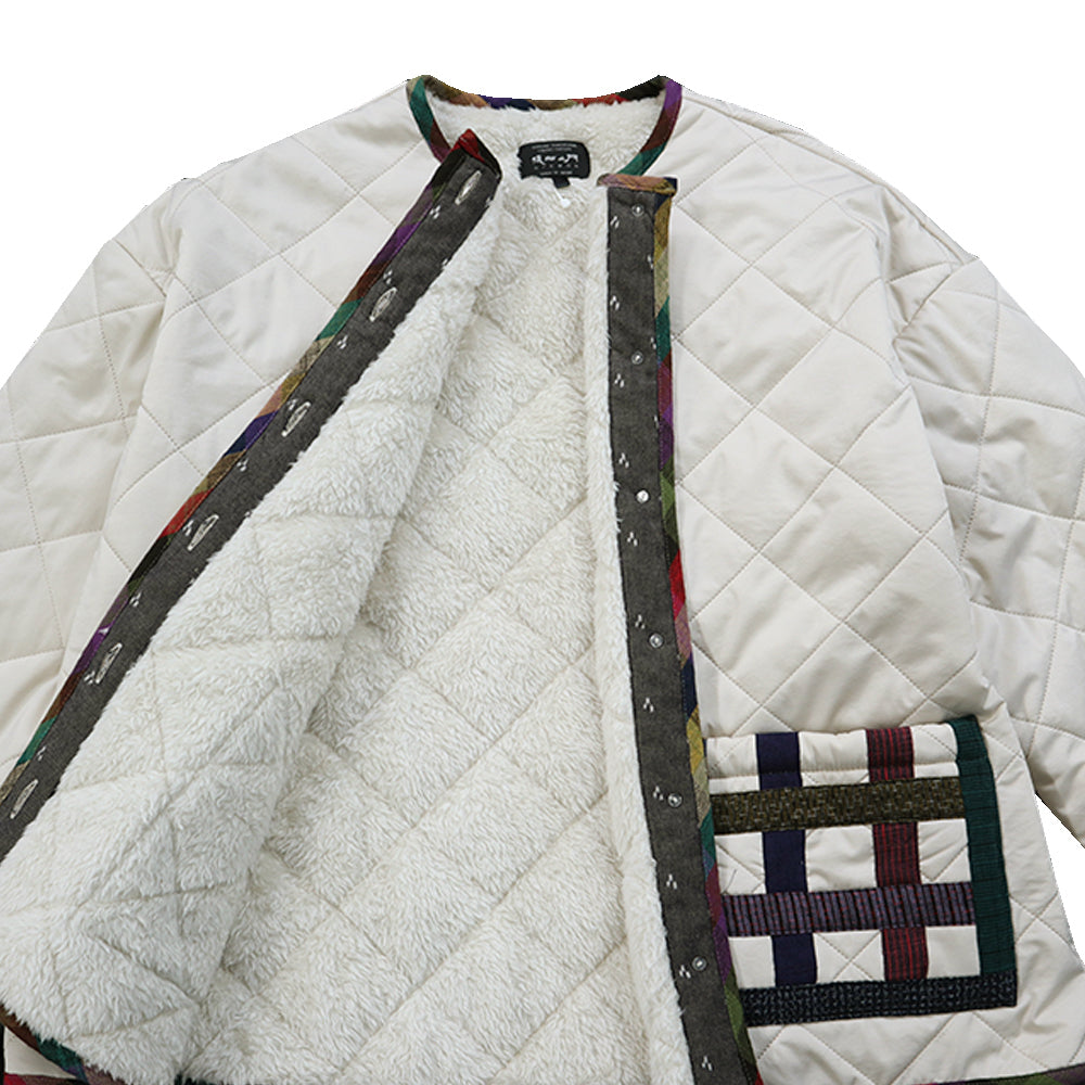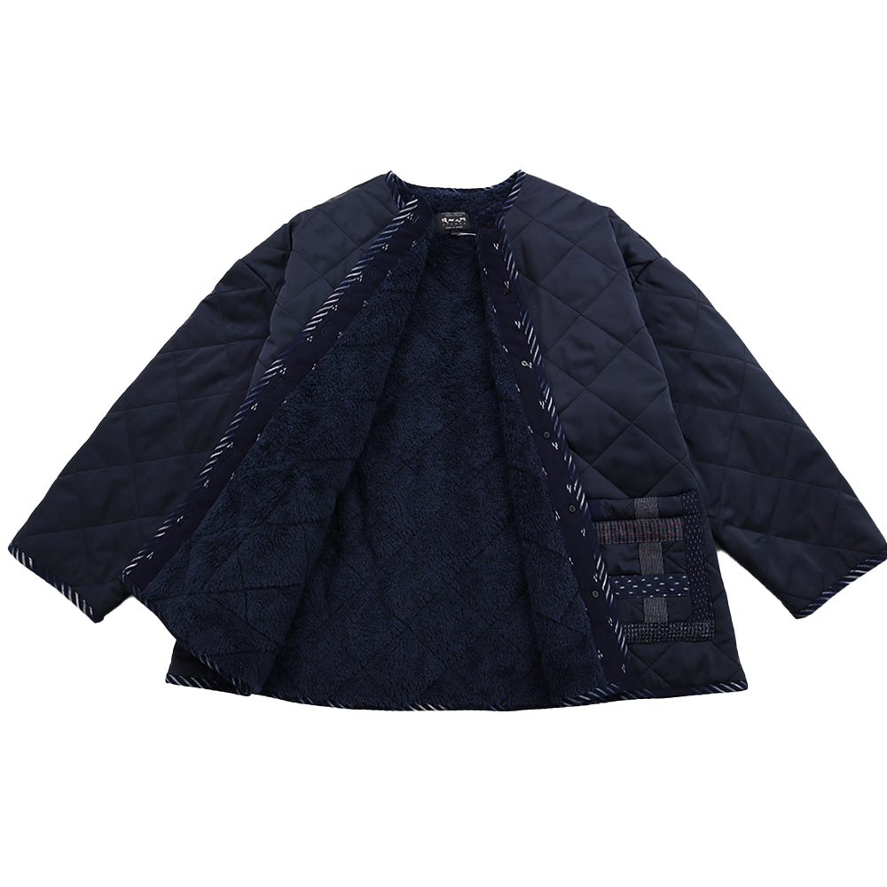 表地には軽やかなナイロン素材を使用し、裏地にはボアフリースをキルティングした、暖かさと軽さを兼ね備えたジャケットです。保温性がありながらも着心地はとても軽く、寒い季節でもストレスなく着用いただけます。