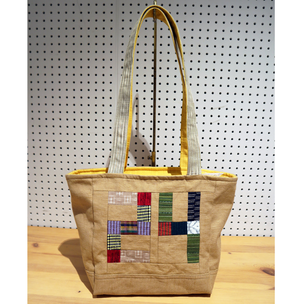 数字のパッチワークをデザインした理由は、人類が最初に描いて表現した数字は、絣と同じくインドで発祥した事や、数字やアルファベットの文字が言葉と同じくらい大切な柄という事を魅力的に感じたからです。特に、24の数字の意味が、金運、健康運、人間関係、家庭運を司る、五大吉数の一つとされ、非常に縁起の良い数字と言われている事からも考えデザインしました。このナンバートートを持つと幸せになるという意味