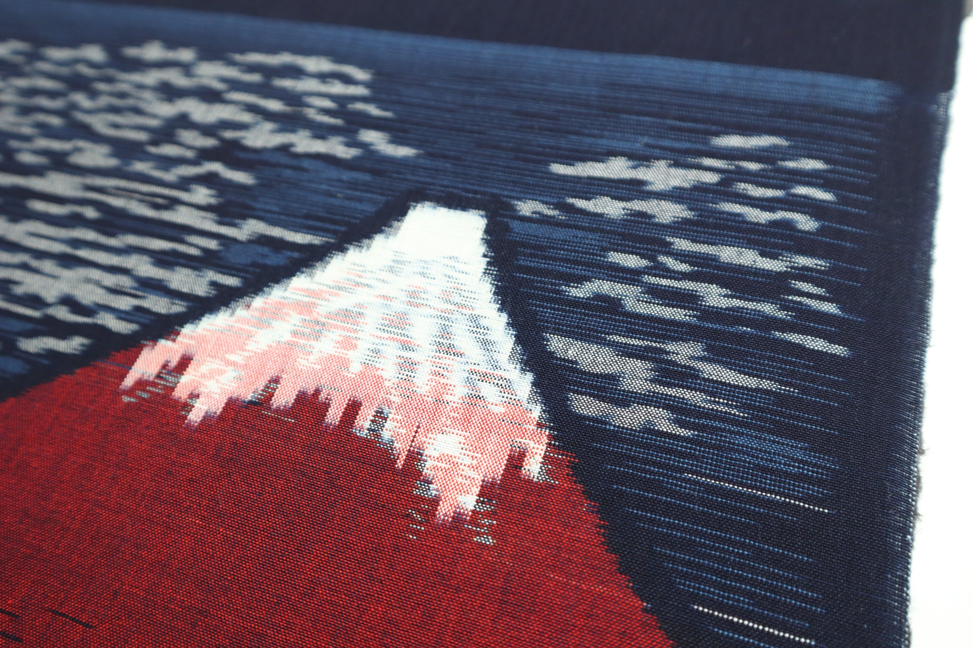 本作品是葛飾北齋的《紅富士》的描繪,葛飾北齋以浮世繪名勝集《富士山三十六景》而聞名,並以久留米絣表現。
