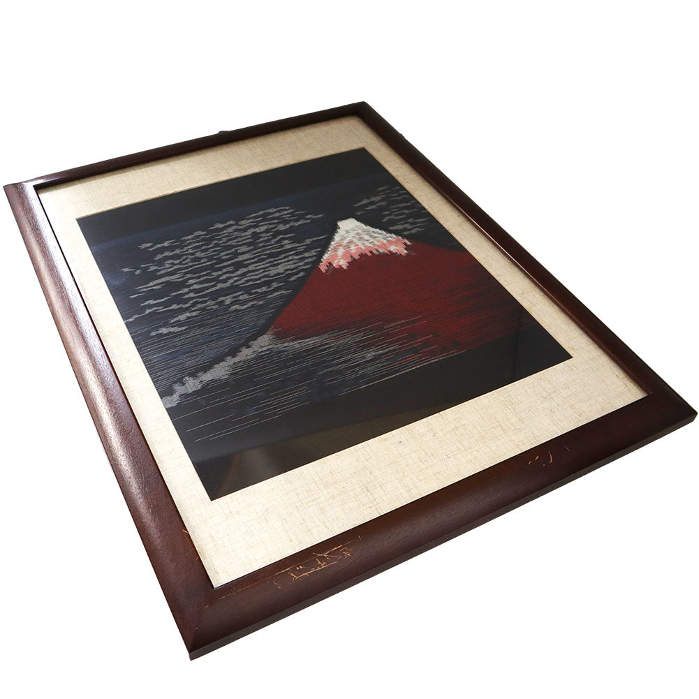 小川內龍雄製作的久留米笠布 富士山三十六景 紅富士 葛飾北齋 裱框