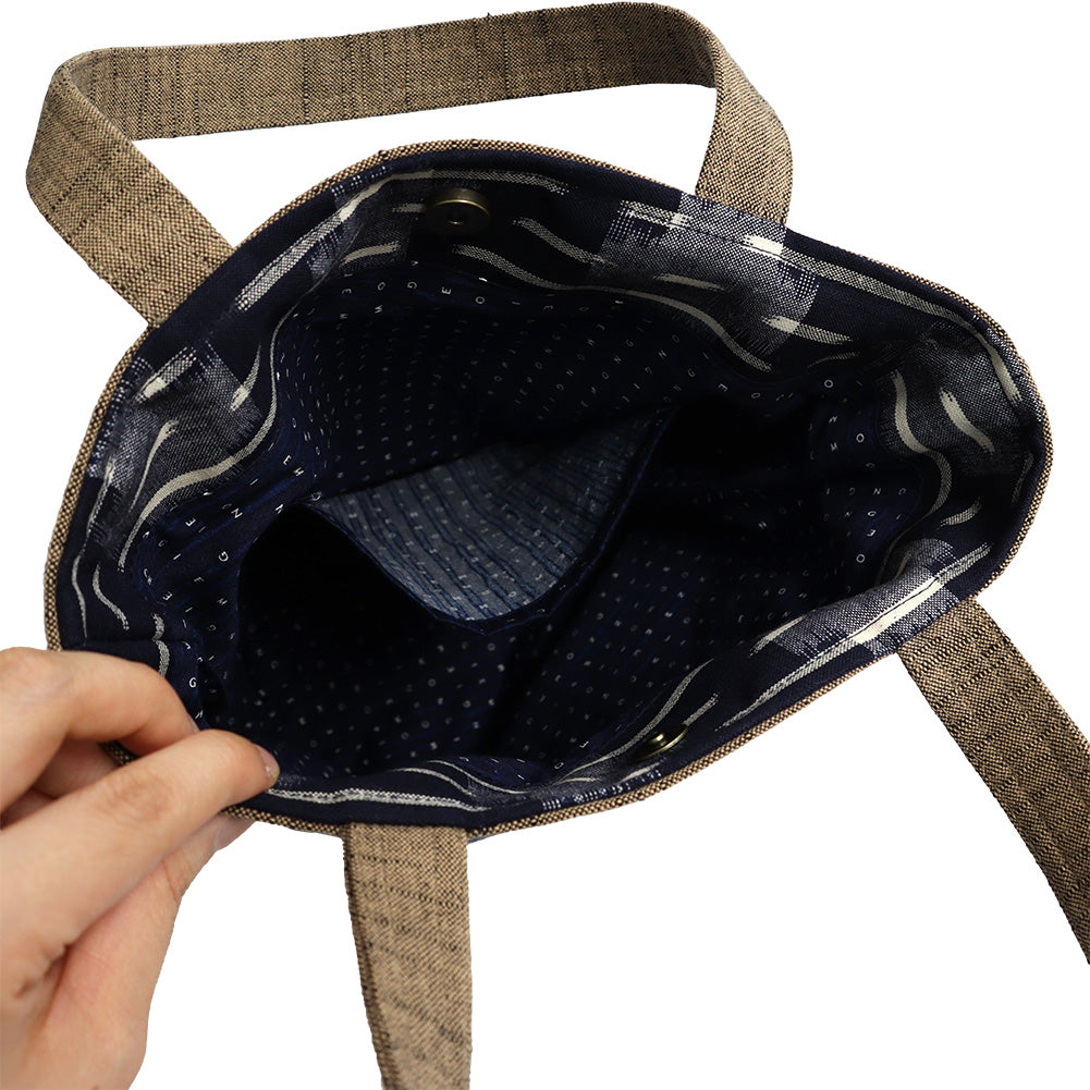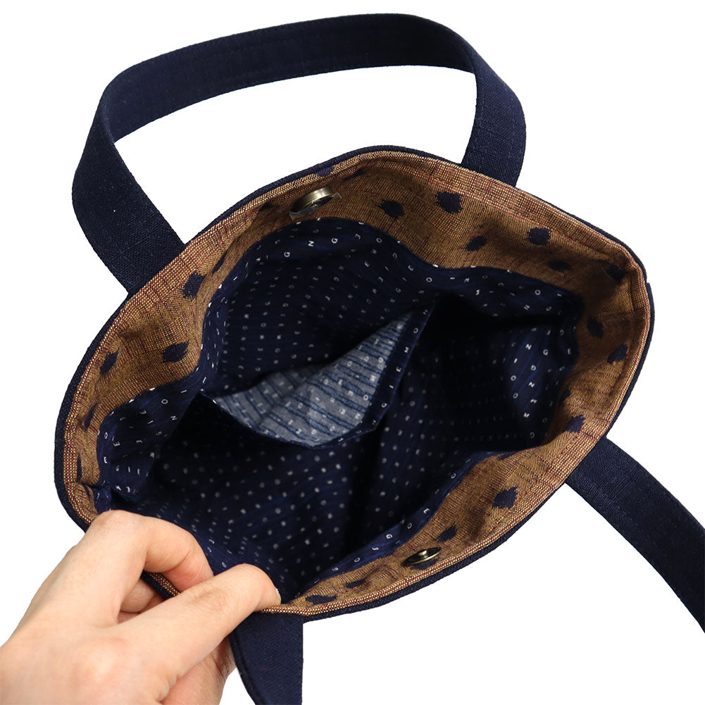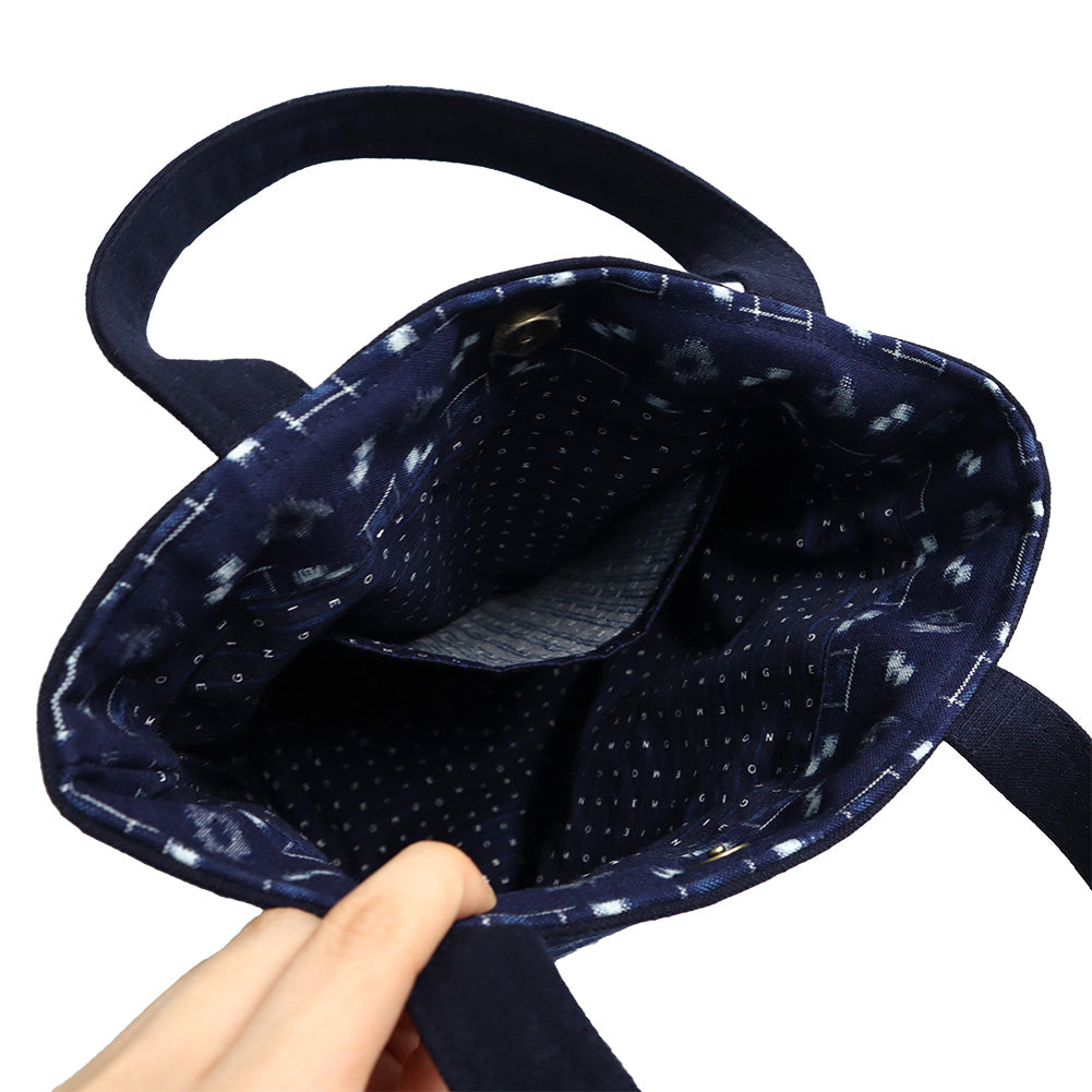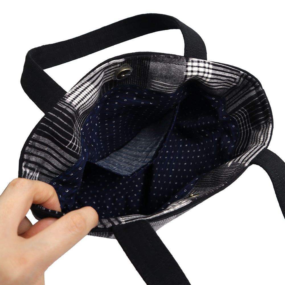 日常使用的小手提包,使用 10 家久留米笠布料店的久留米笠布料。