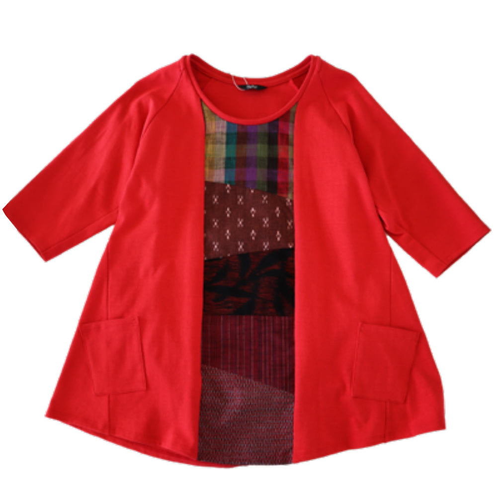 肩部和下擺採用久留米絣花紋布。