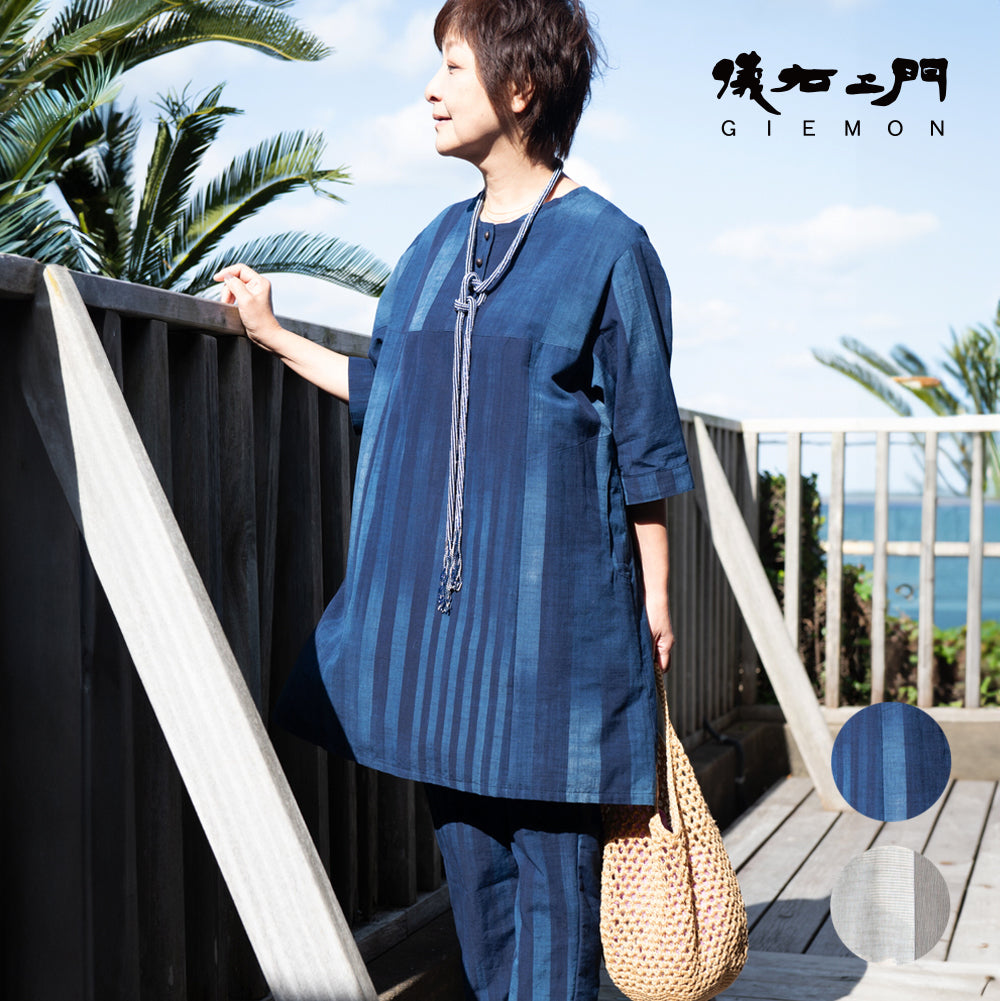 吉右衛門 吉右衛門 久留米絣 套衫 束腰長襯衫 Ta537 日本製 [2025ss]