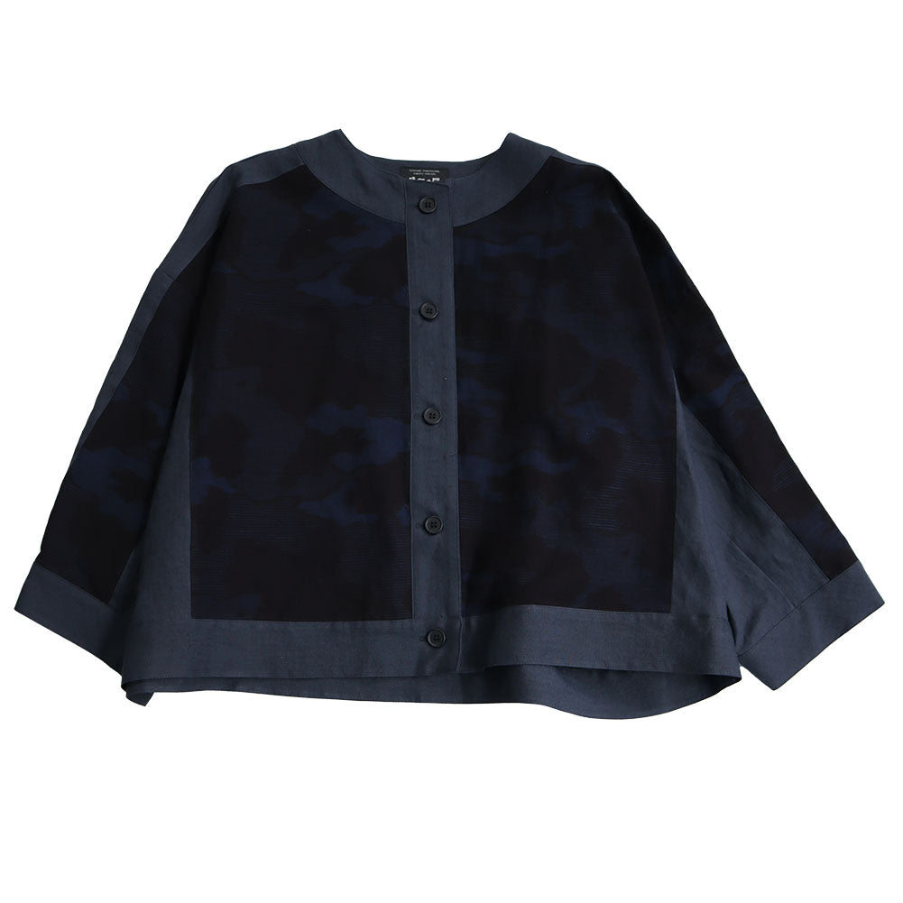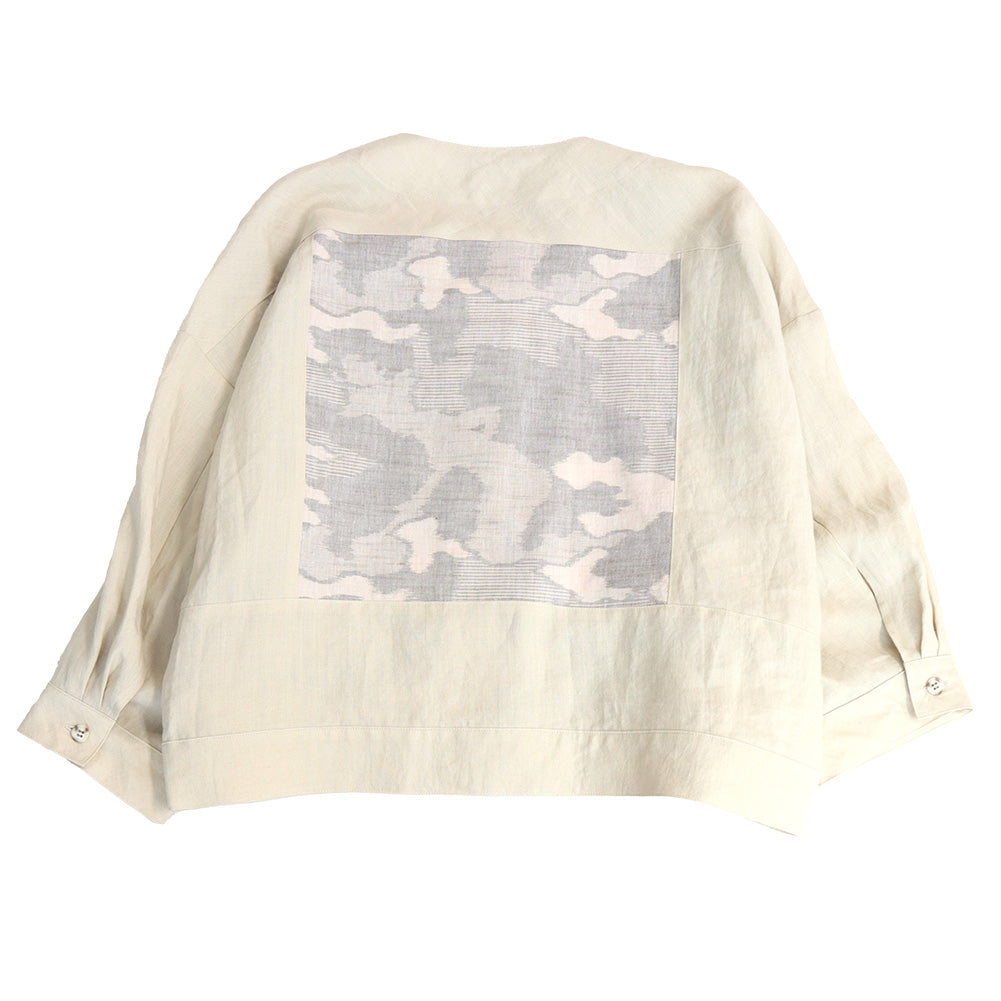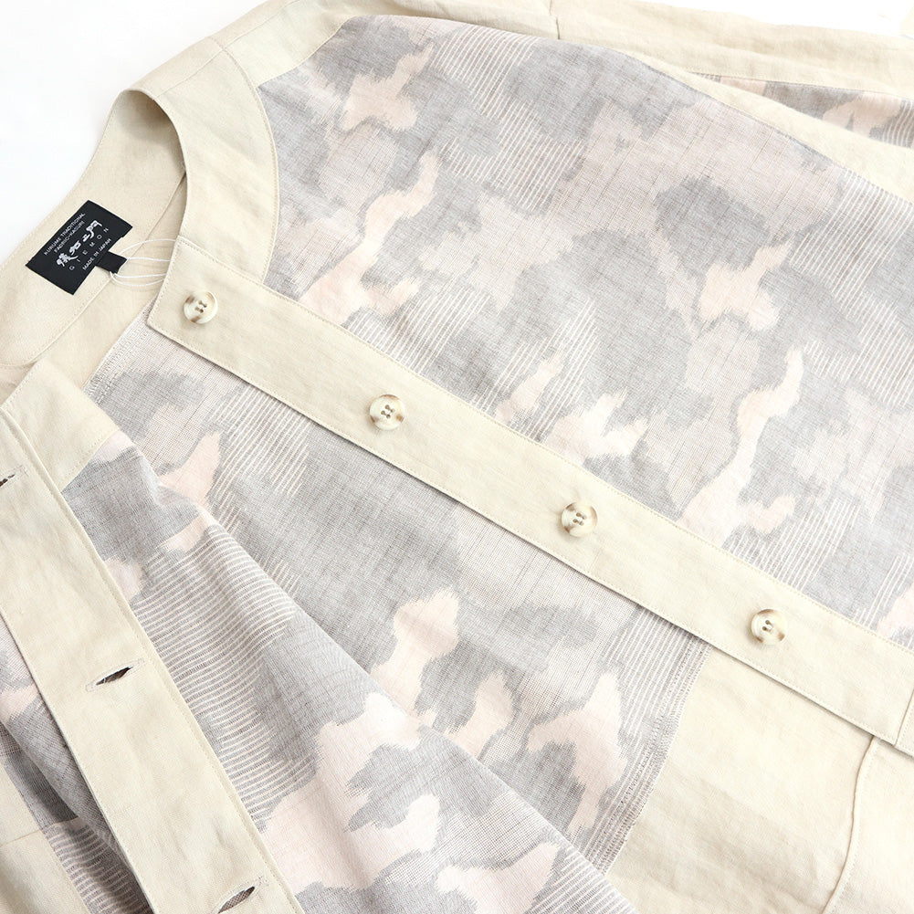 這是一件久留米絣羽織上衣,正面、袖子和後背中央有單獨的布料。這是襯衫,其中一件是用久留米絣布料製成的,另一件是用亞麻布料製成的。大麻成分使其感覺輕盈,易於穿著。
