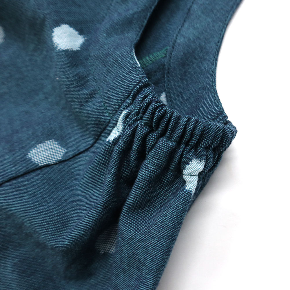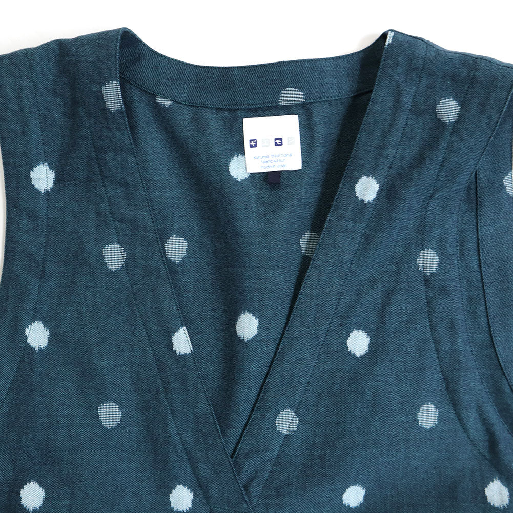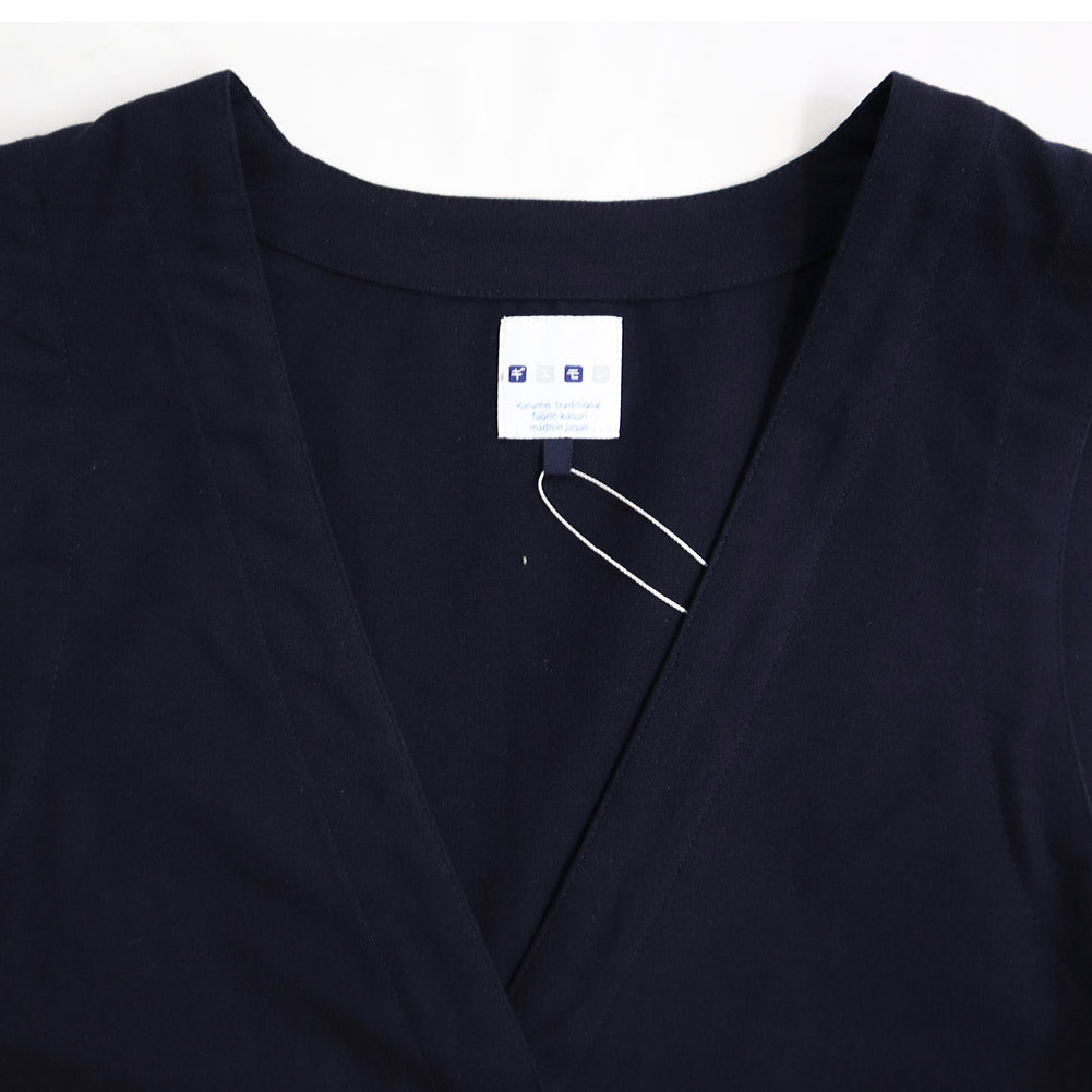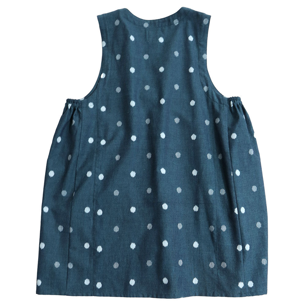 長款久留米絣背心。兩側都有鬆緊帶,方便穿脫。