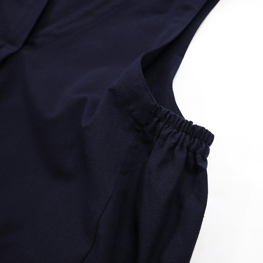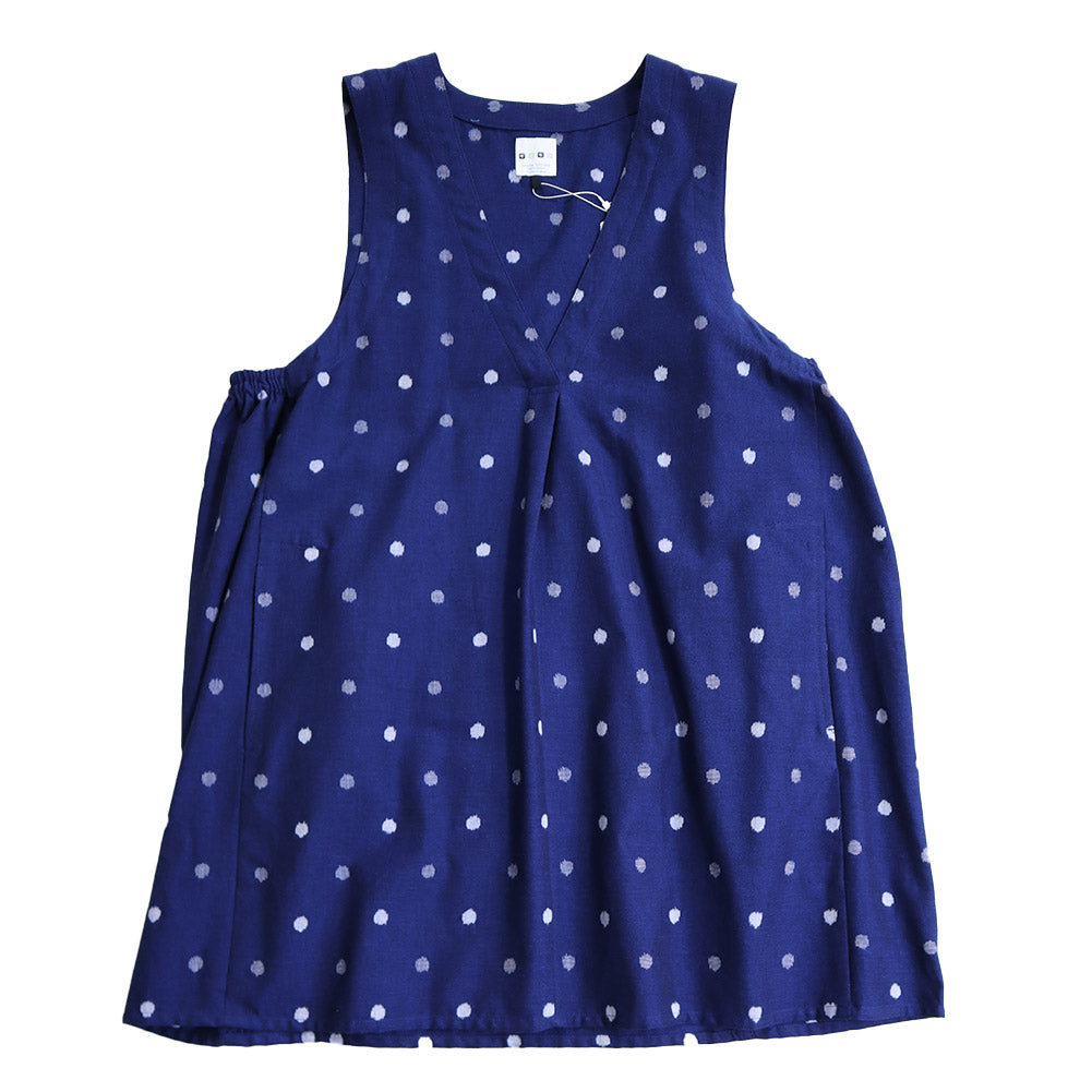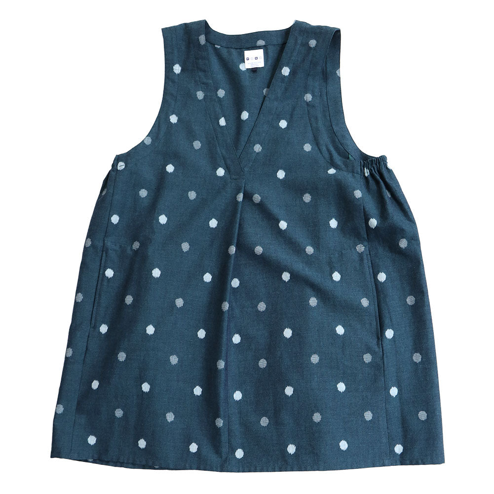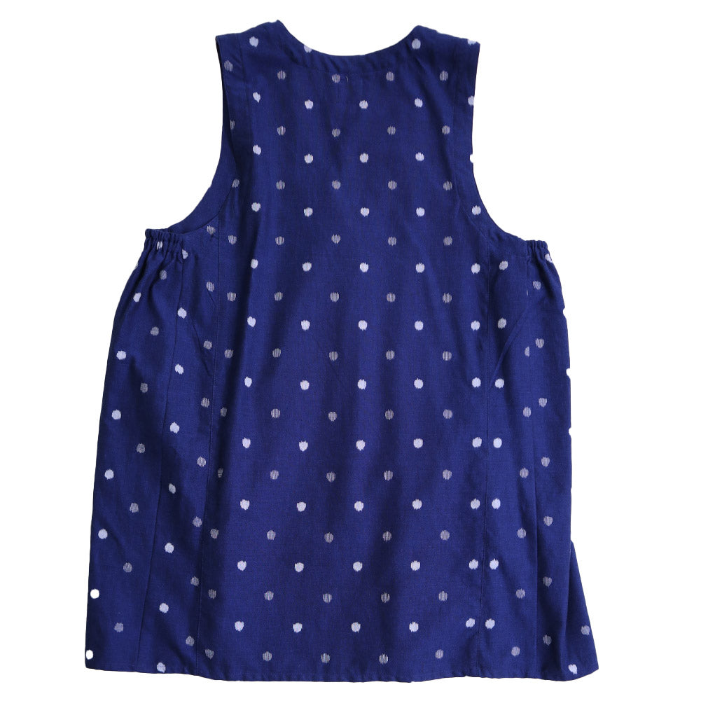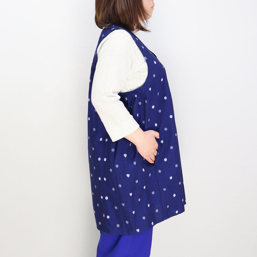 長款久留米絣背心。兩側都有鬆緊帶,方便穿脫。