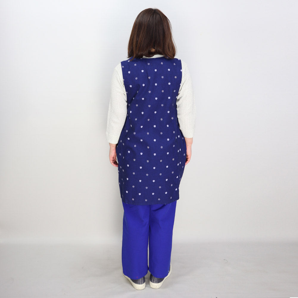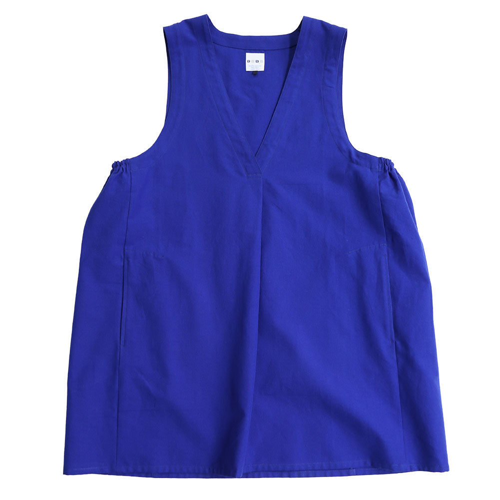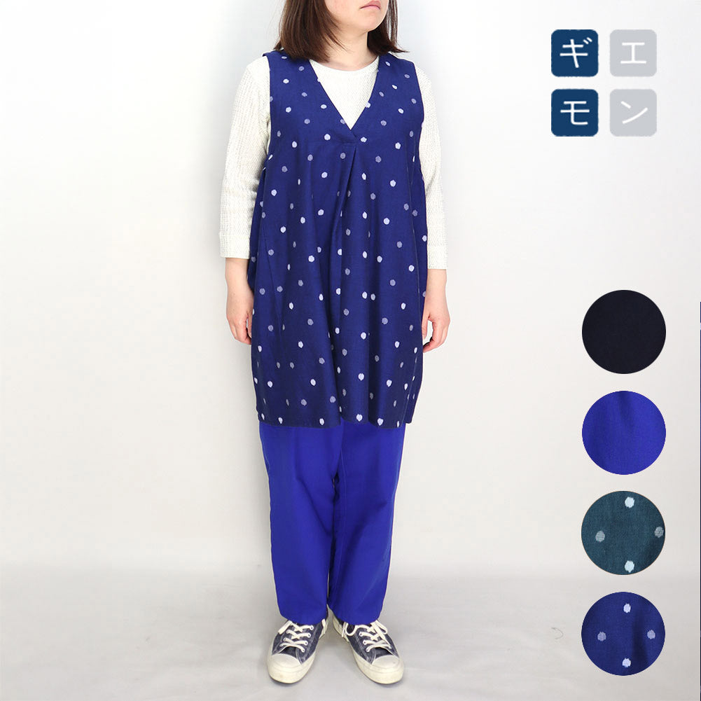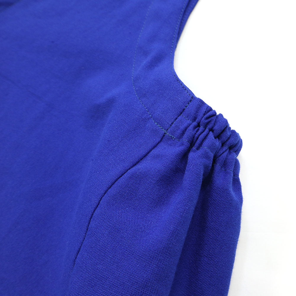 長款久留米絣背心。兩側都有鬆緊帶,方便穿脫。