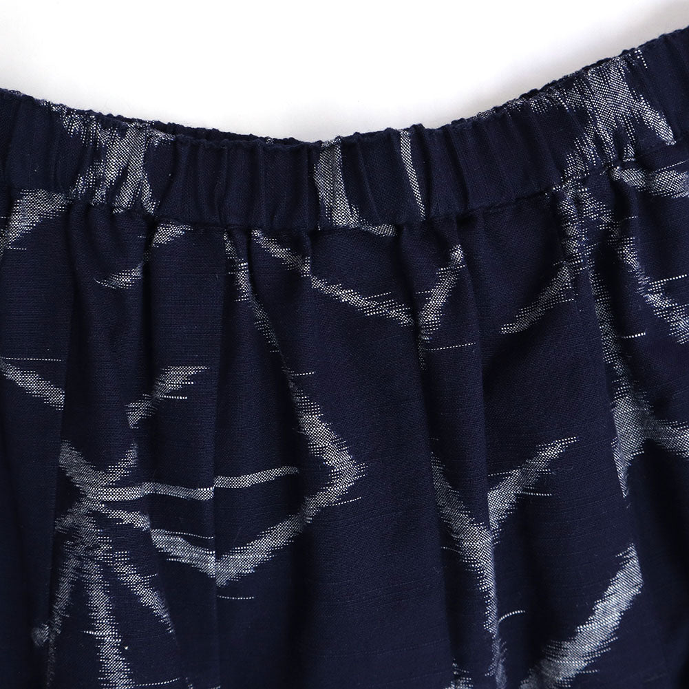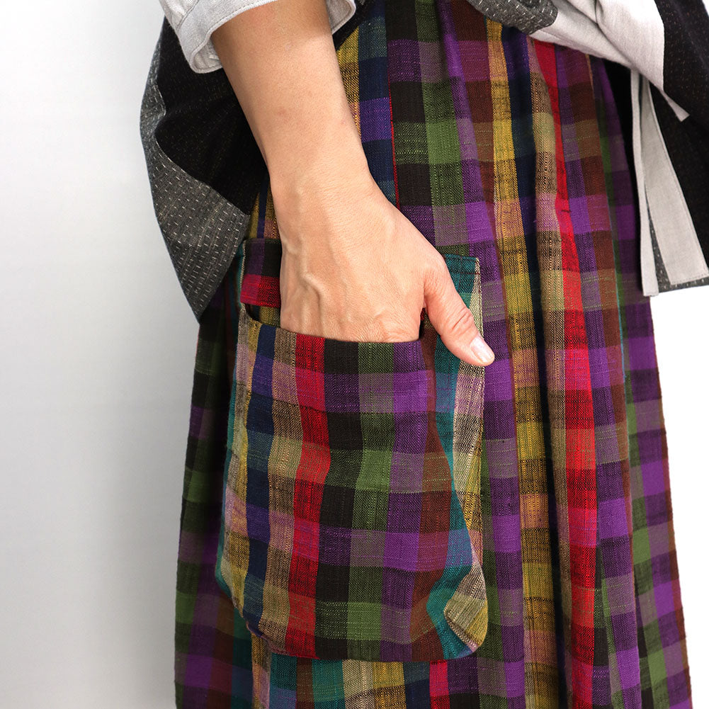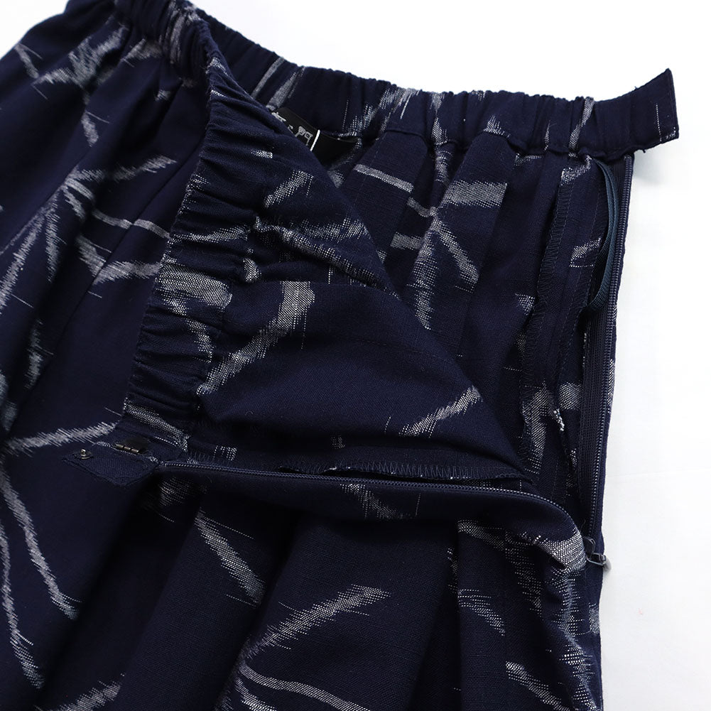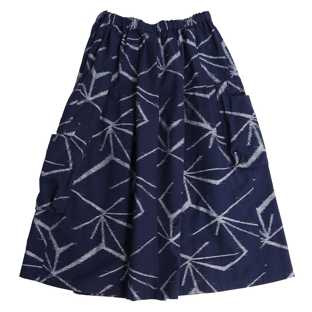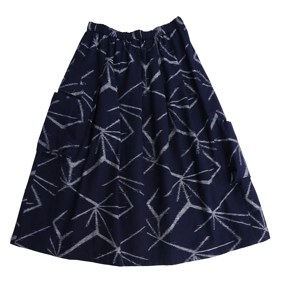 久留米 kasuri 褶邊半身裙,不同層次設有大口袋。