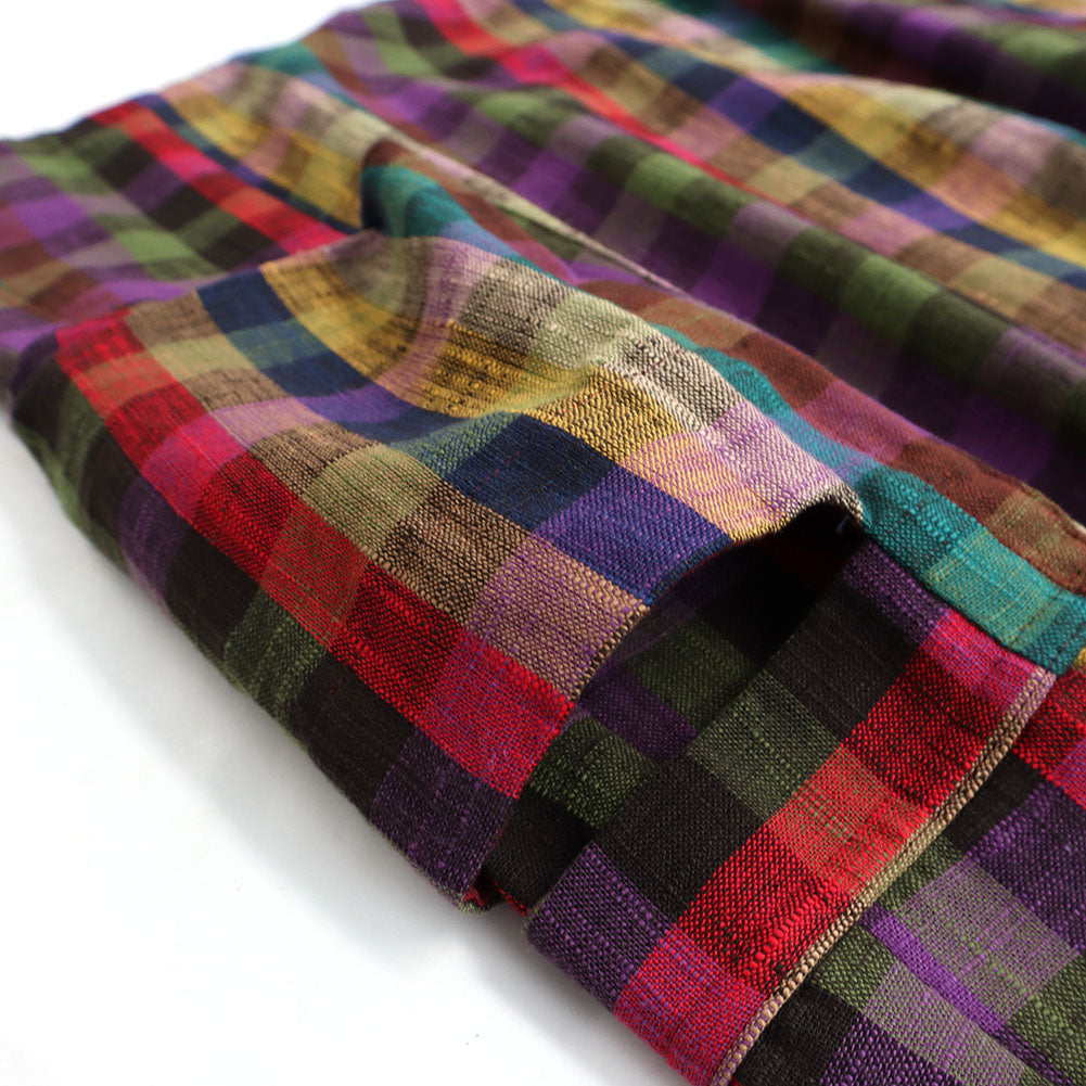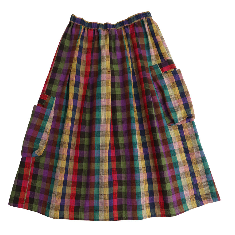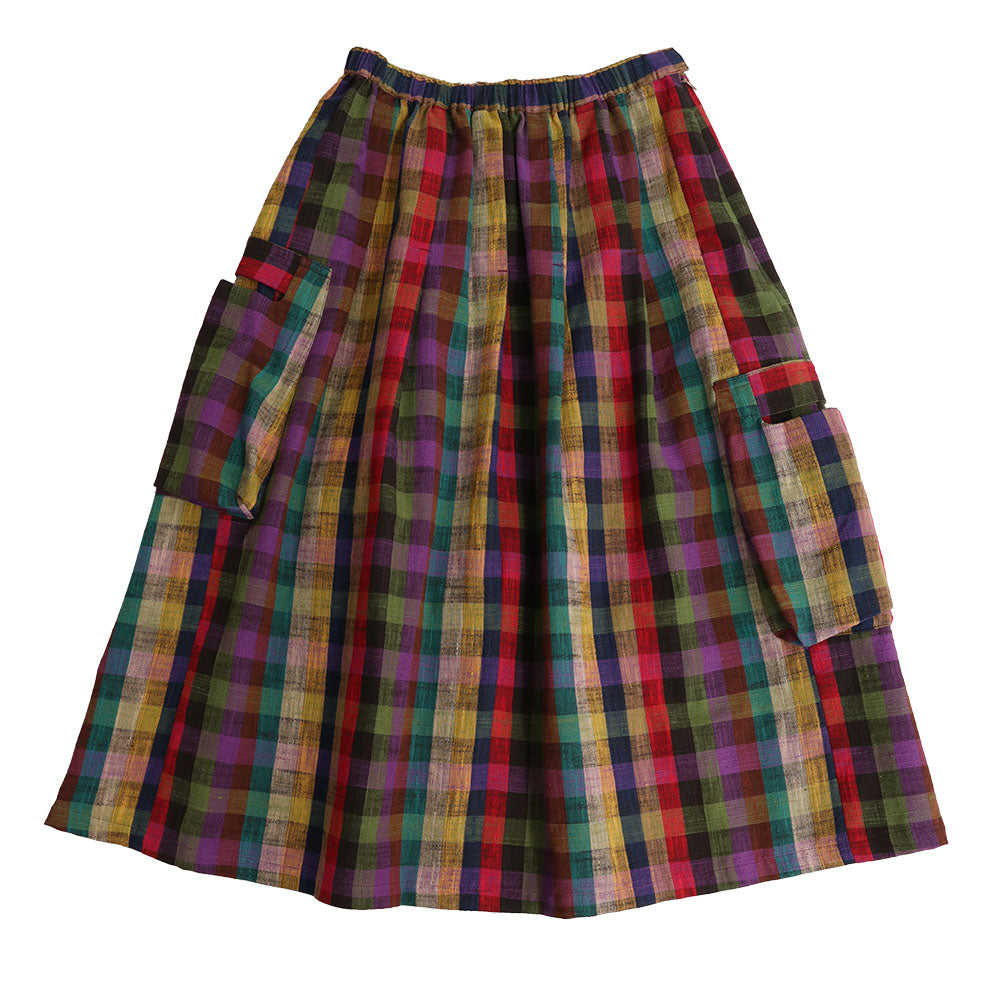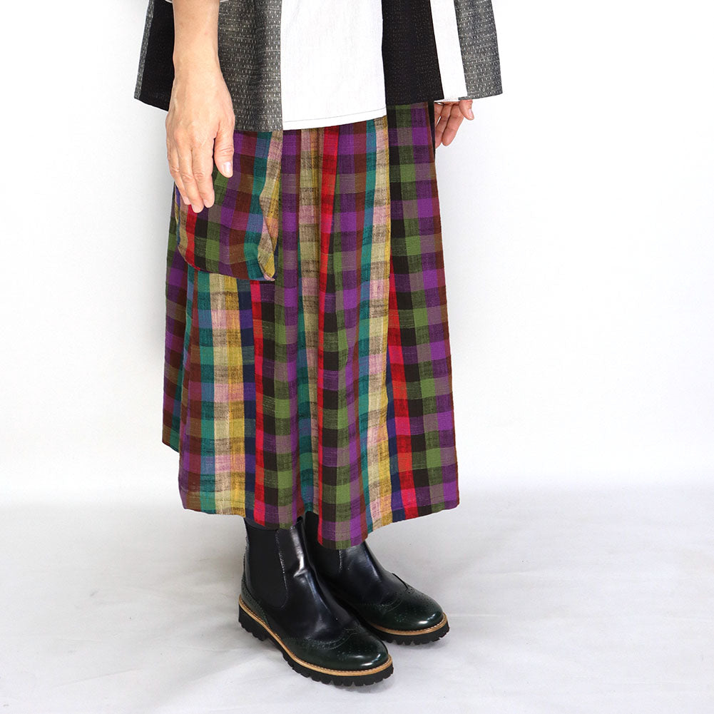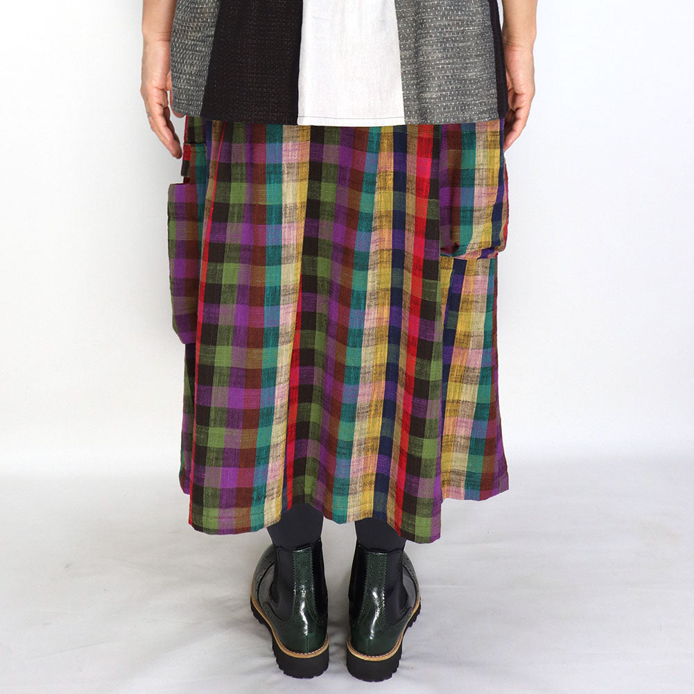 久留米 kasuri 褶邊半身裙,不同層次設有大口袋。