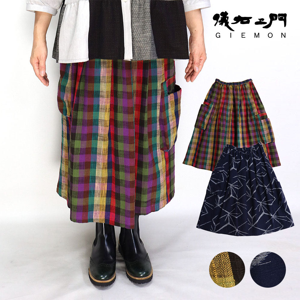 Giemon Giemon Giemon Mimore 長裙 Ku933 Kurume Kasuri Made in Japan Spring Summer Mrs. Okamoto Store