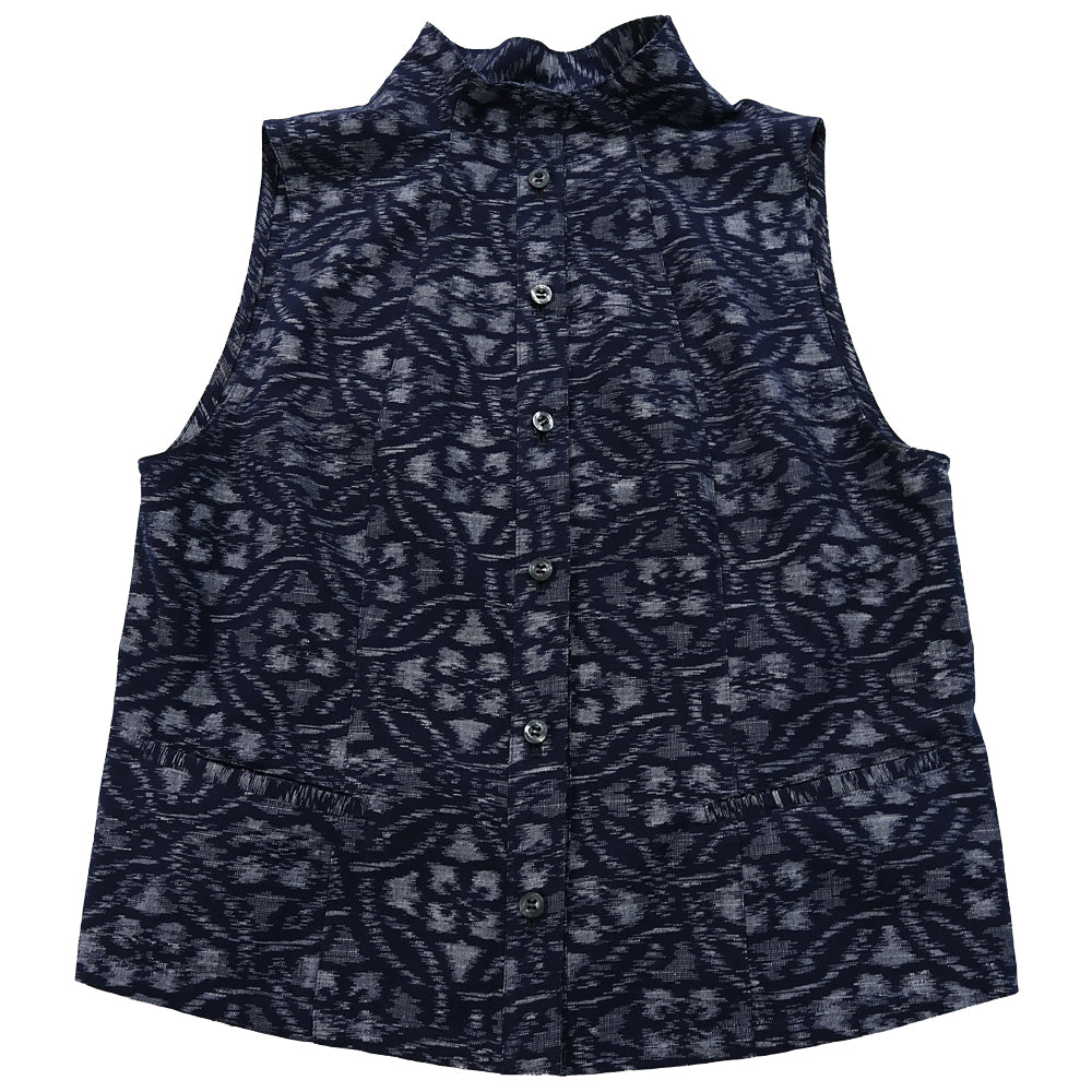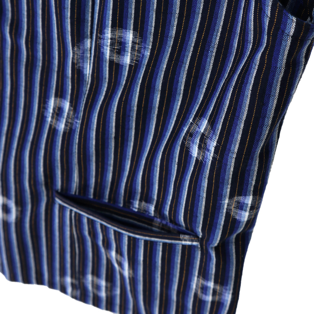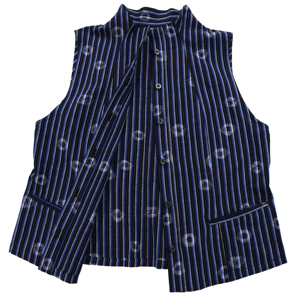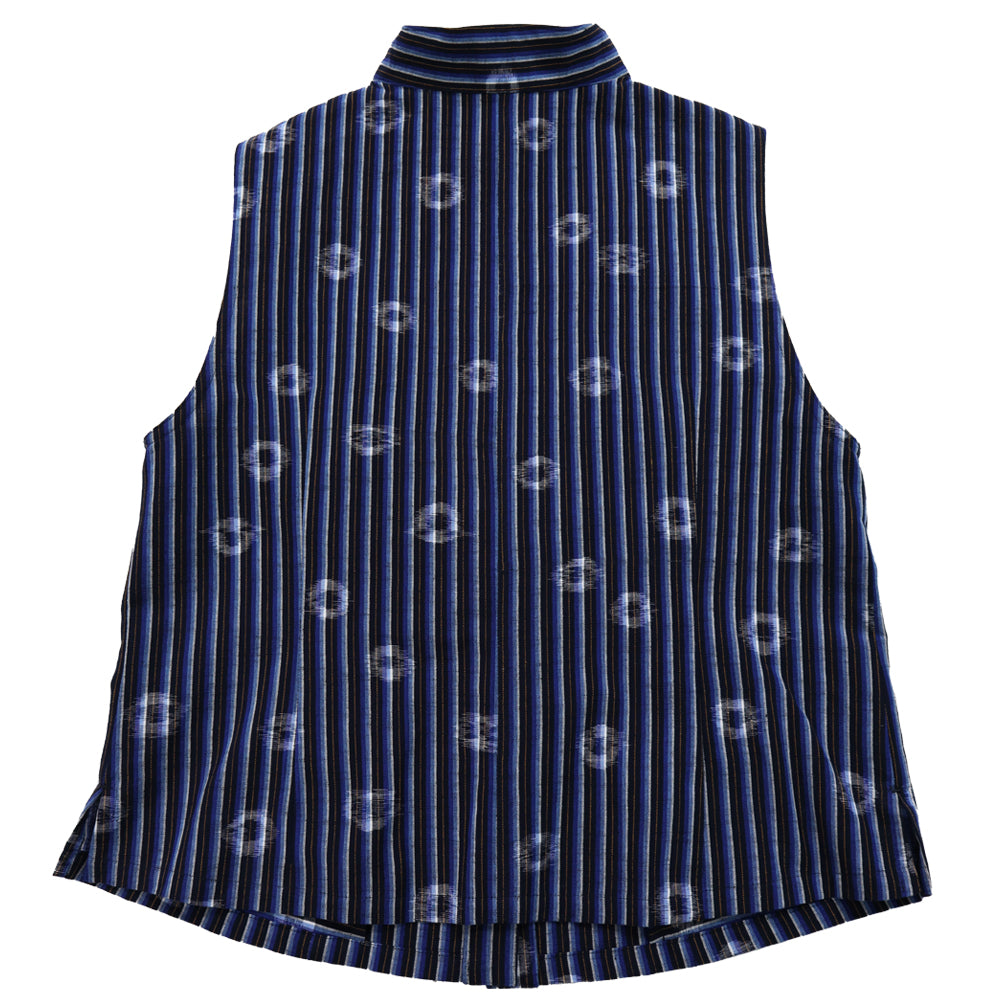 這款背心外觀乾淨,採用福岡縣南部築後地區生產的傳統工藝久留米笠布料製成。