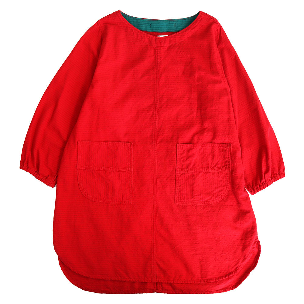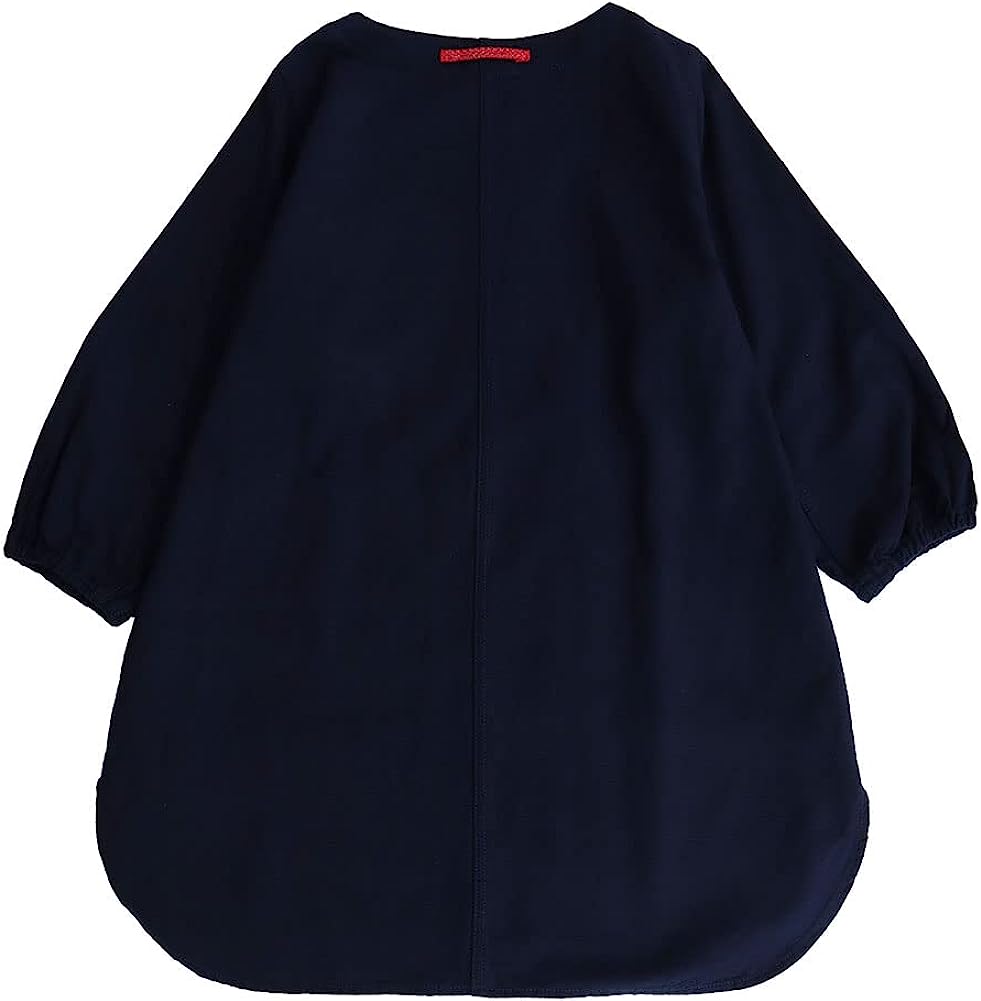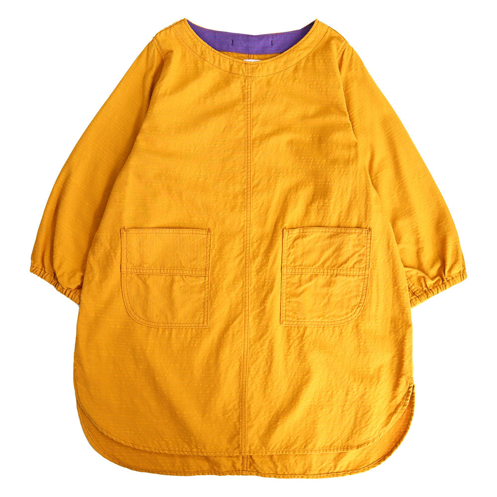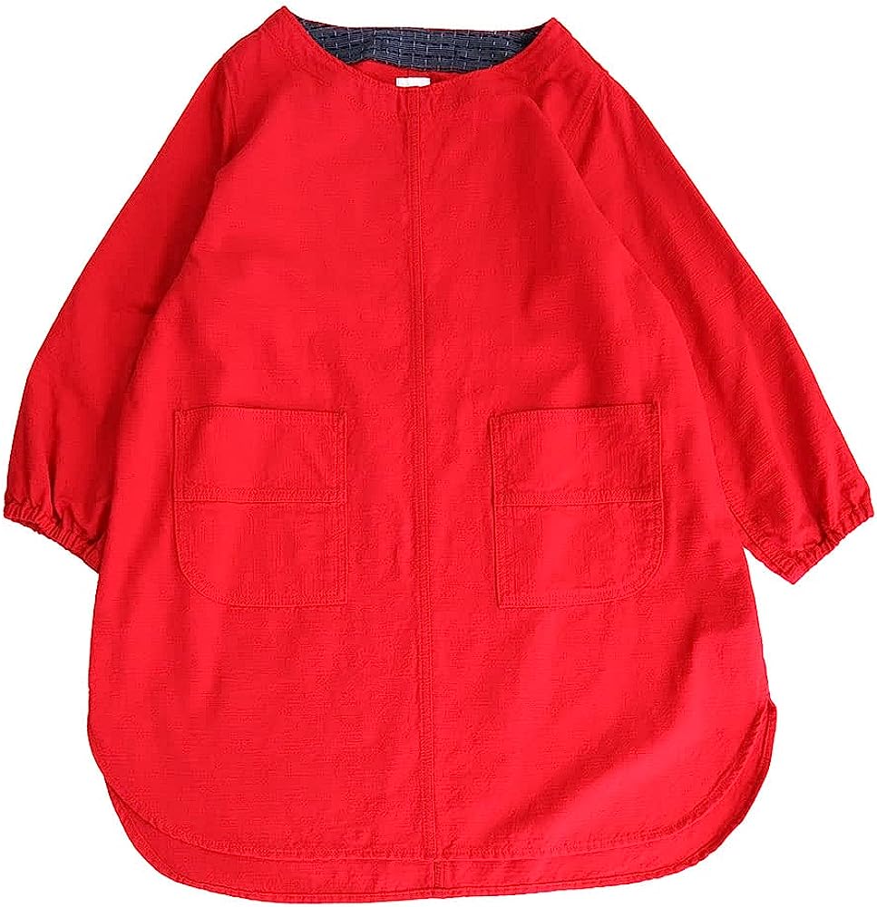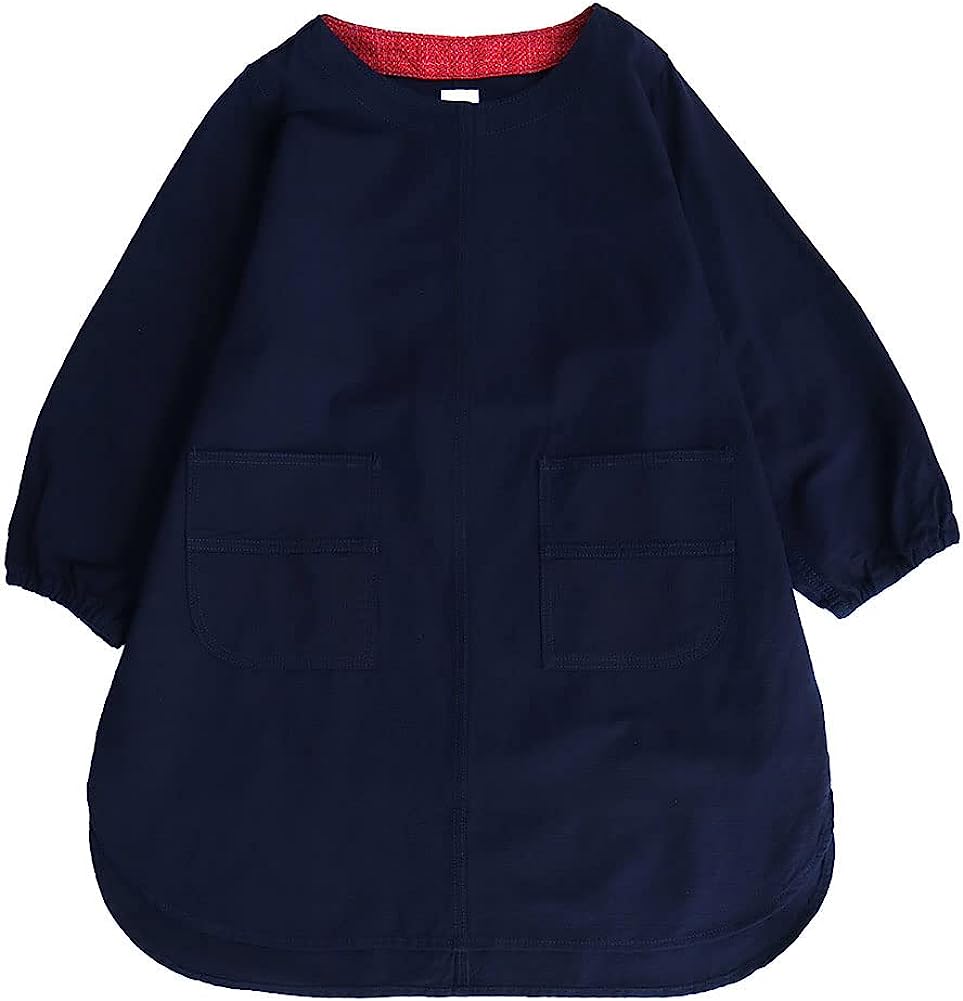久留米磴割烹圍裙。肩寬窄,下擺的圓度剪裁不同,營造出年輕的整體印象。