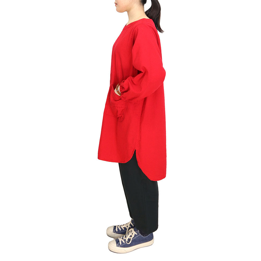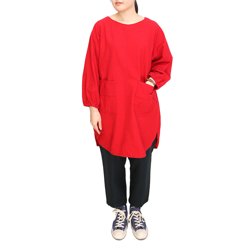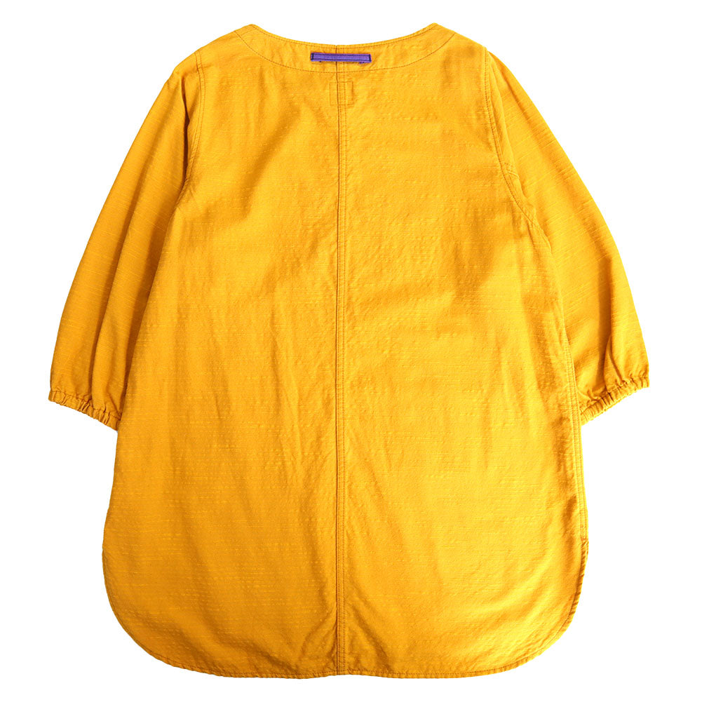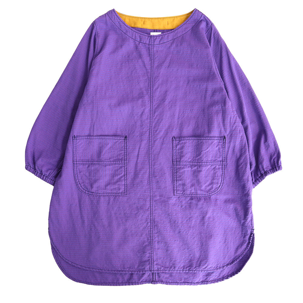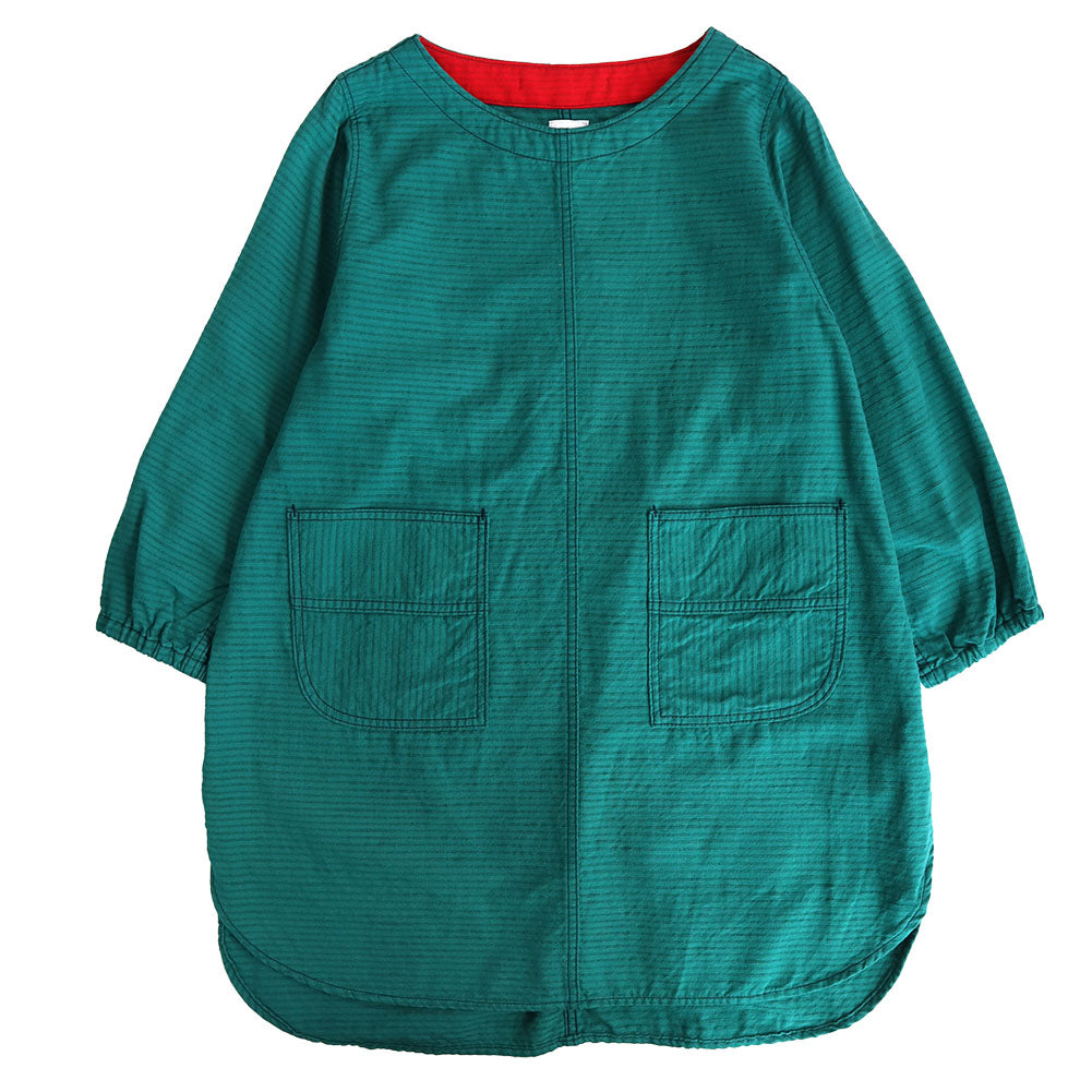 久留米磴割烹圍裙。肩寬窄,下擺的圓度剪裁不同,營造出年輕的整體印象。