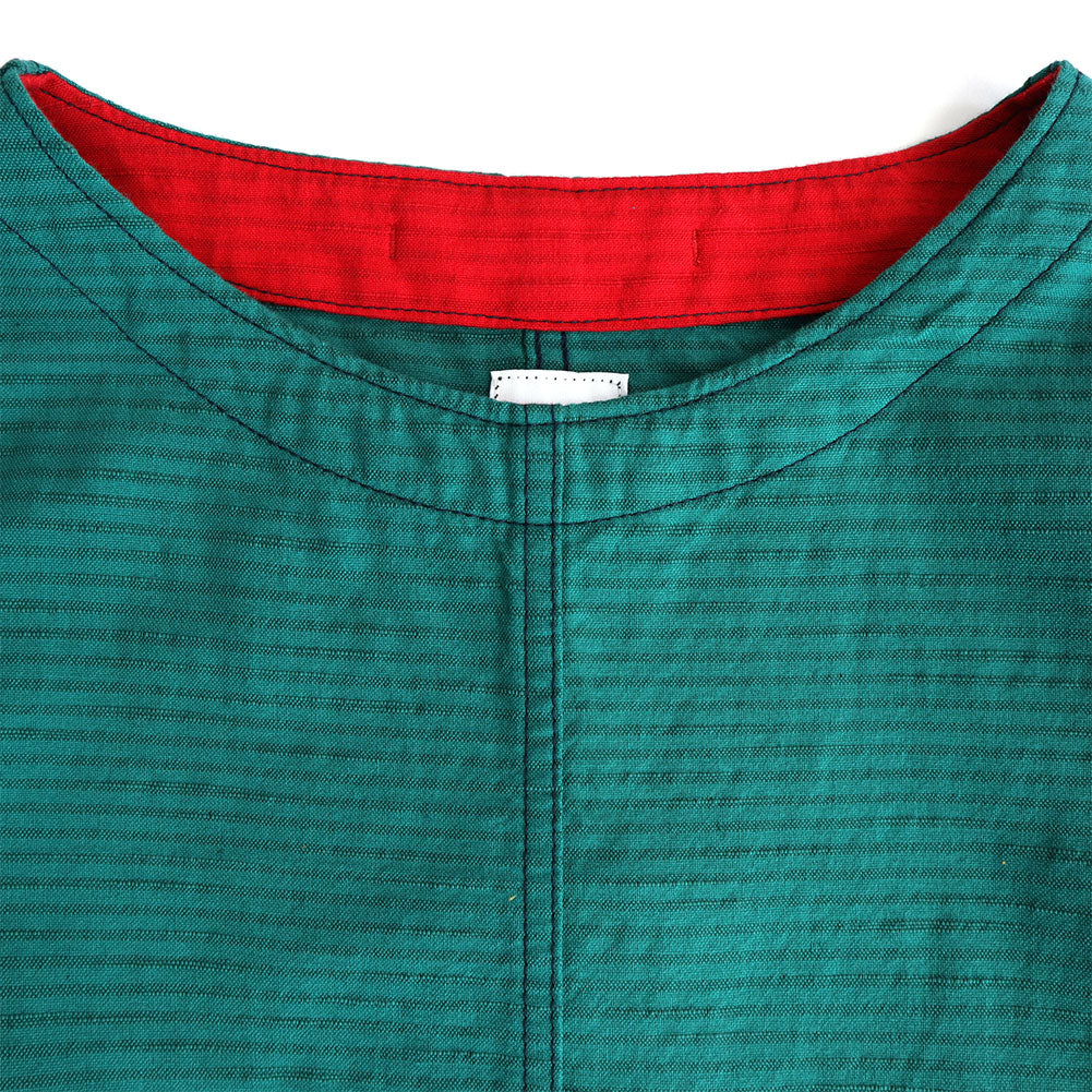 Kurume Kasuri 布用於加固頸部區域,頸部區域容易因摩擦而撕裂。